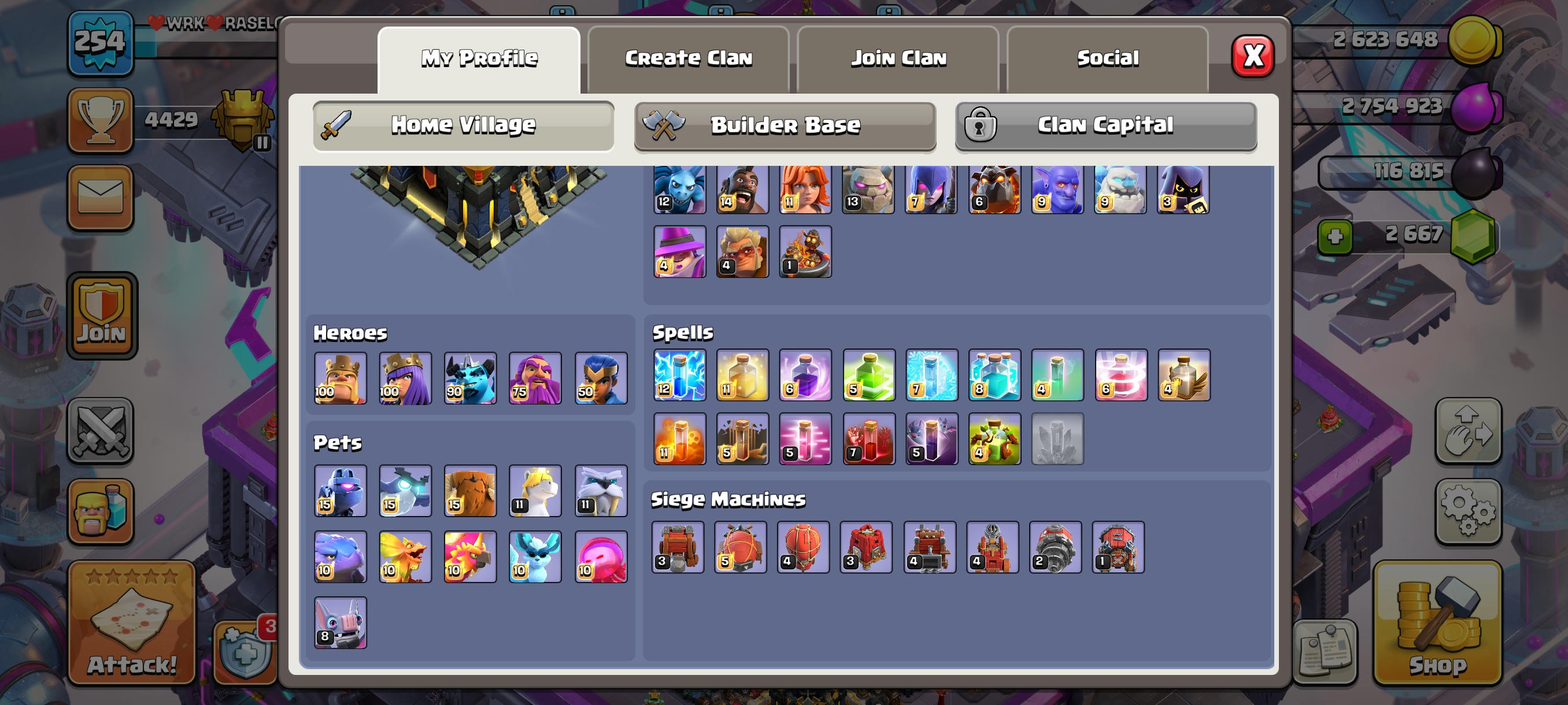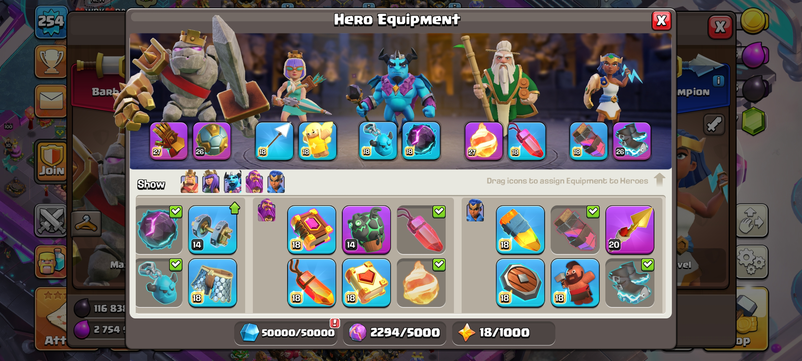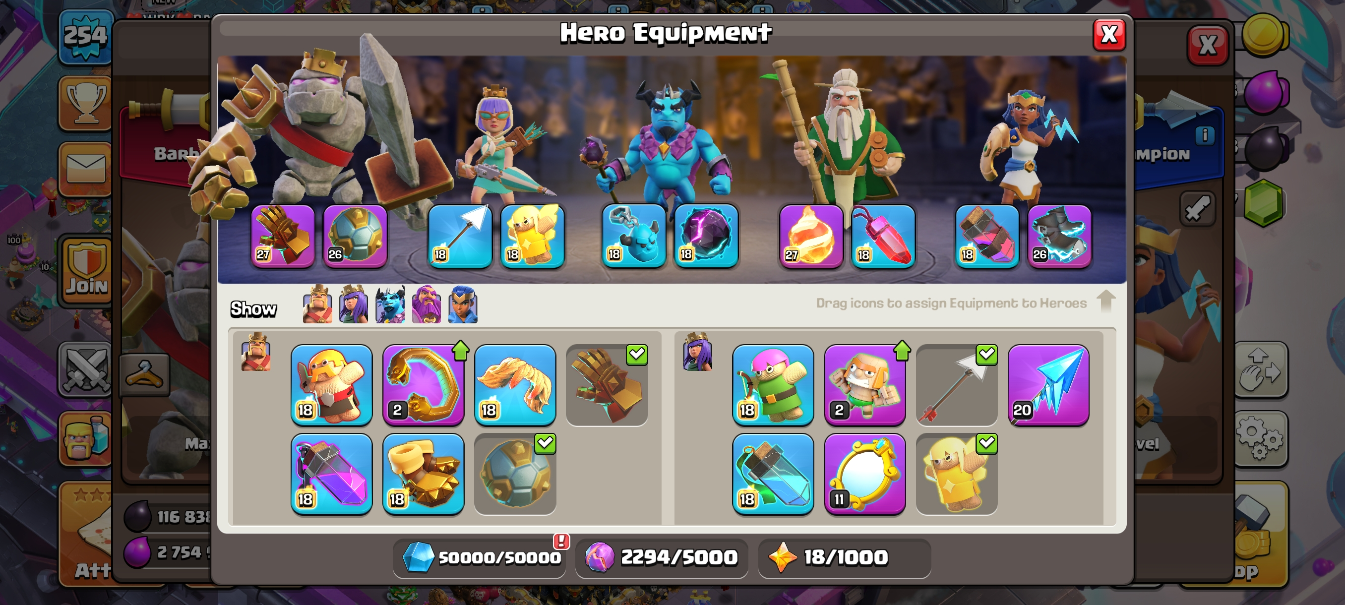 TH17 NEAR MAX-24 EQUIPMENT MAX-HERO 100-100-90-75-50-5945 BEST-15000 LEGENDARY TROPHY-2x SCENERY 19x SKIN-BUILDER HALL MAX-1203 MADEL-3600 WAR STAR