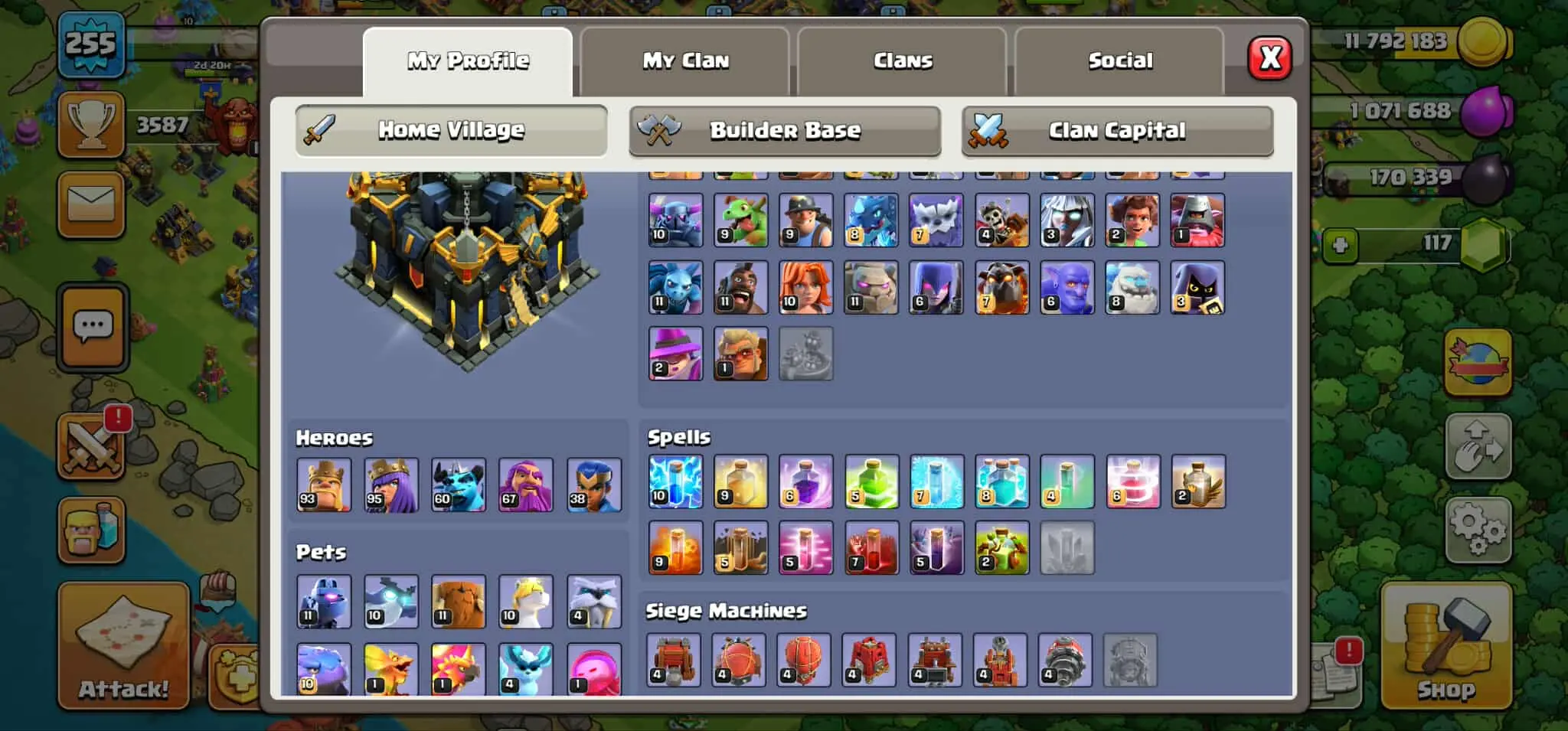 XP 255♦️TH 17♦️Heroes 95-95-61-68-40♦️Ws 3723♦️Nc 1000♦️High Defence + Lab♦️Balance account♦️