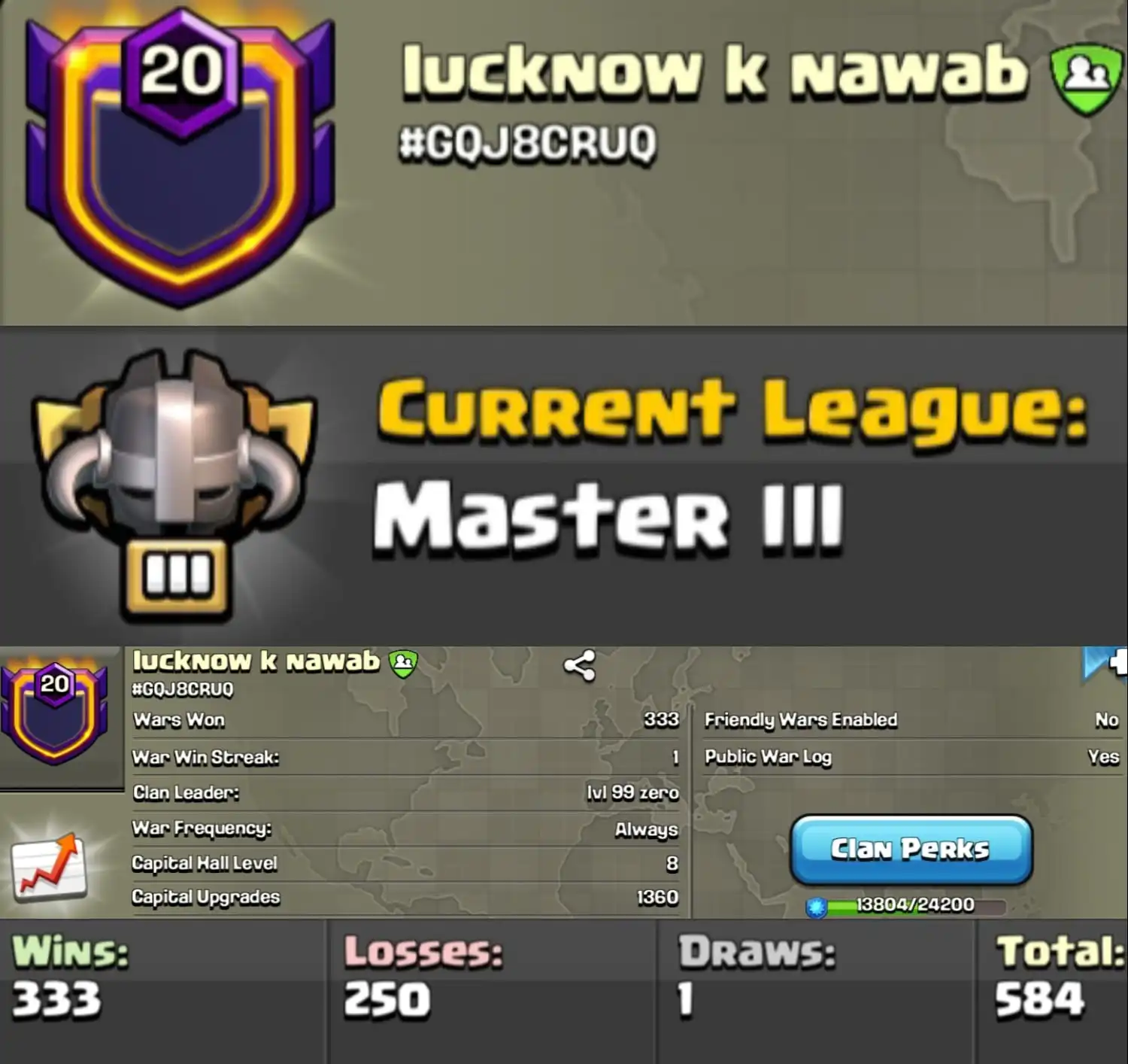 Level 20 | Name -King Knights | Clan Capital - 8 | Crystal League | Awesome Warlog | Fast Delivery