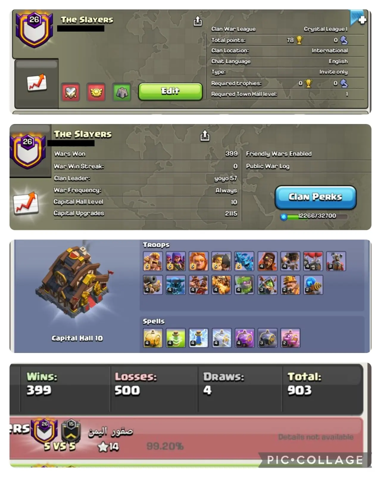 🔥[LEVEL26]🔥NAME- The Slayers | 💥☠️ WARLOG W-L-D: 399-500-4 | CWL LEAGUE : CRYSTAL 1 🏆 | CC: 10 !!⚡⚡