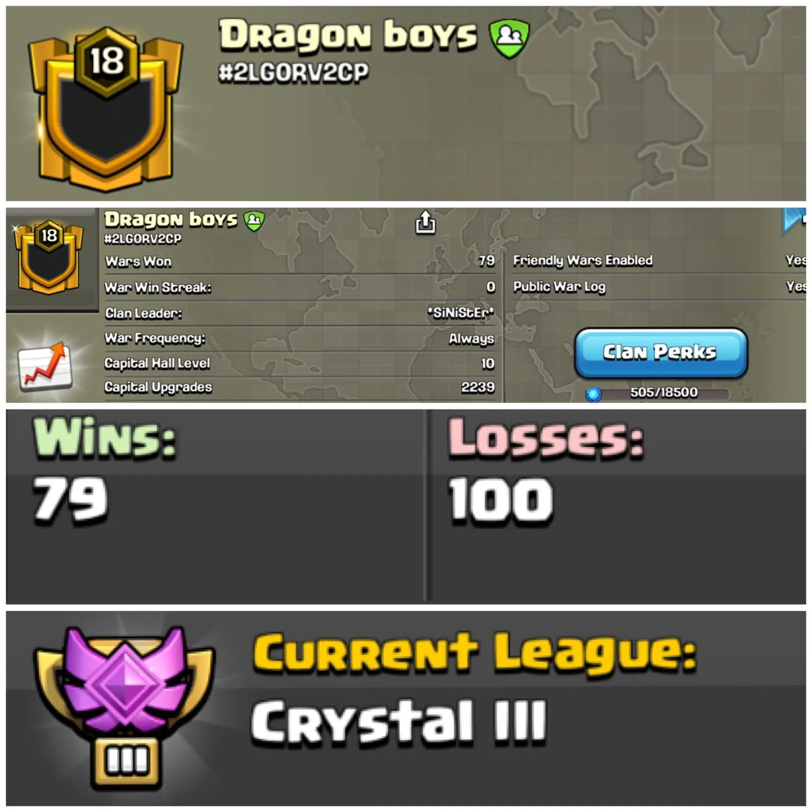 [CC:10] Dragon boys | LVL 18 | WARLOG W/L/D:79/100 CWL LEAGUE :CRYSTAL 3 !!