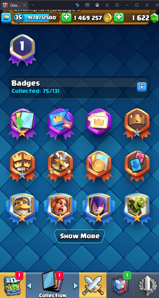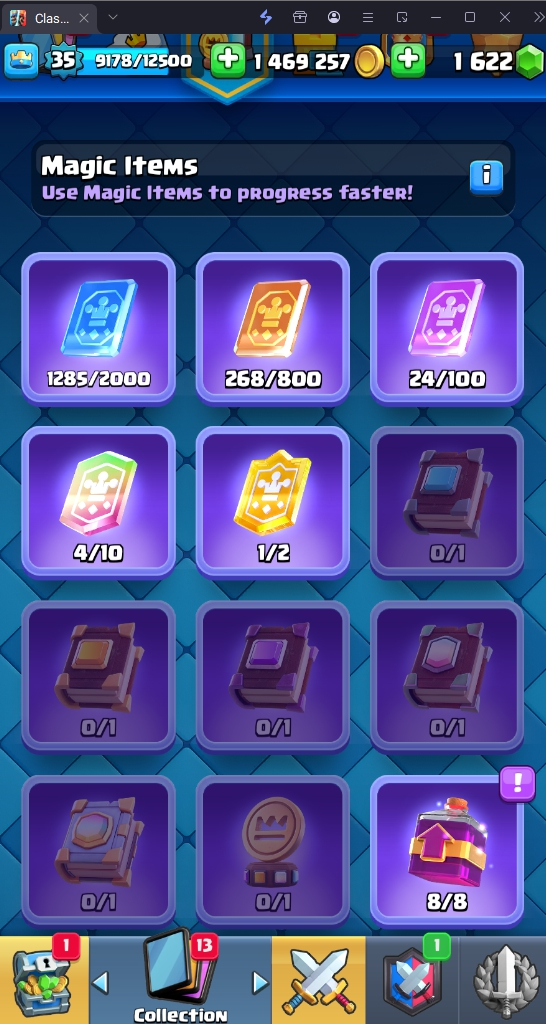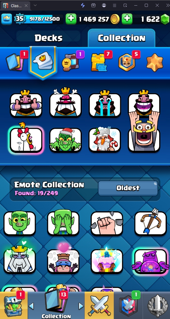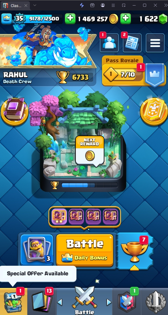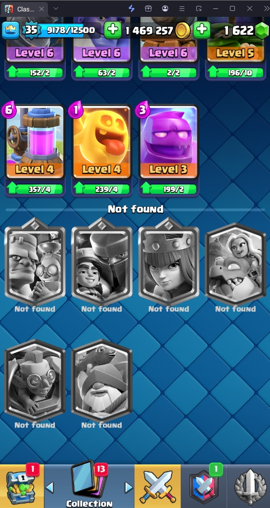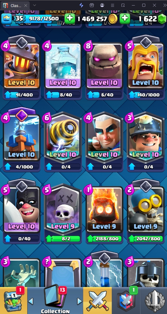 6733 TROPHIES 🏆 35 LVL 💯 KT 12 👑 115 CARDS ♦️ 1 MAX CARDS 👑 0 ELITE CARDS 🔮 6 EVO 💎 EMOTE 19 🎭 #VCCGVGPYP ⸱ TAG ACCOUNT ⚙️ LEGENDARY ARENA • 9000 TROPHIES 💎