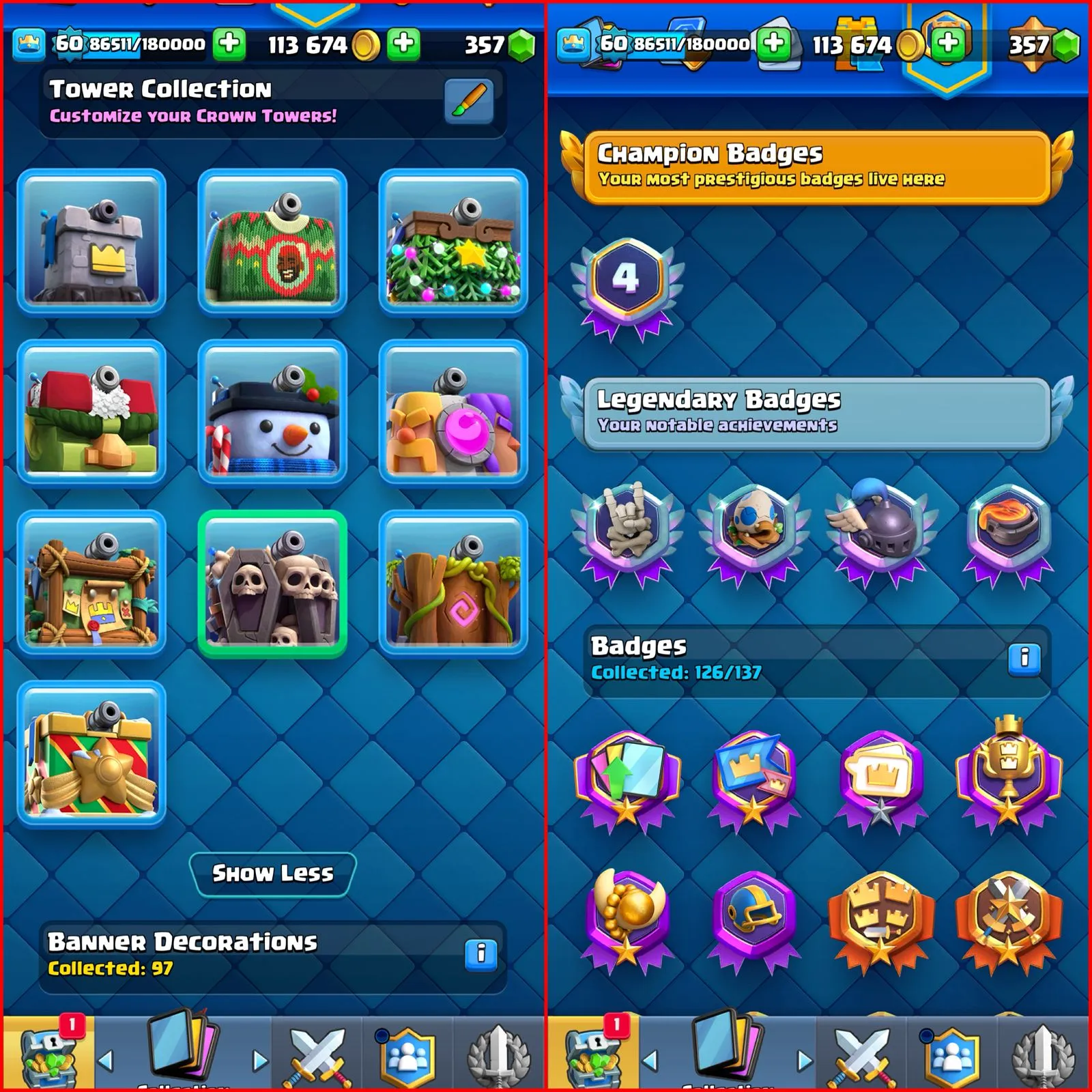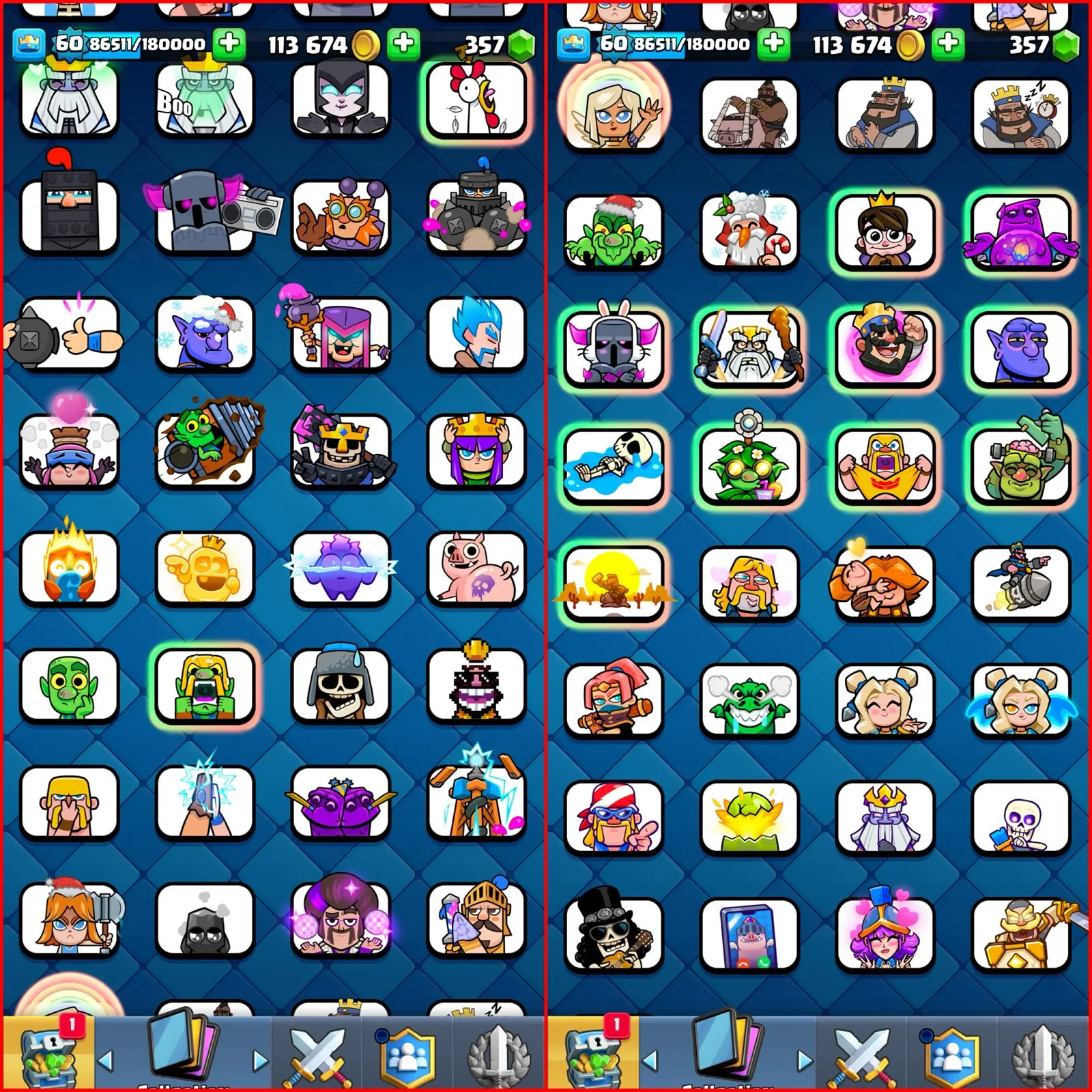 ✦ 69 Max Cards ✦ 21 Evolutions ✦ 14 Elites ✦ KT15 ✦ 10.5K Trophy ✦ 114 Emotes ✦ 10 Tower Skins ✦