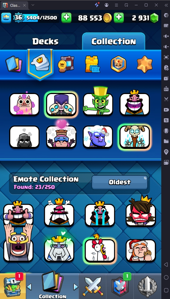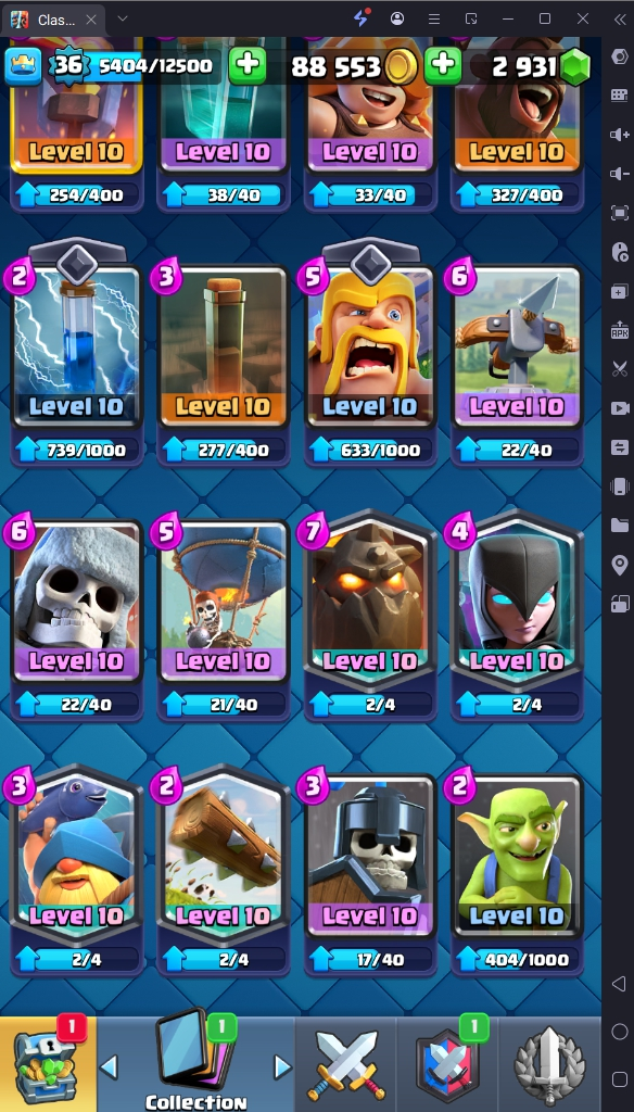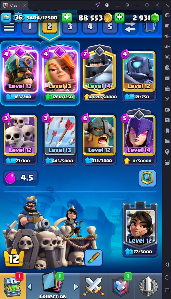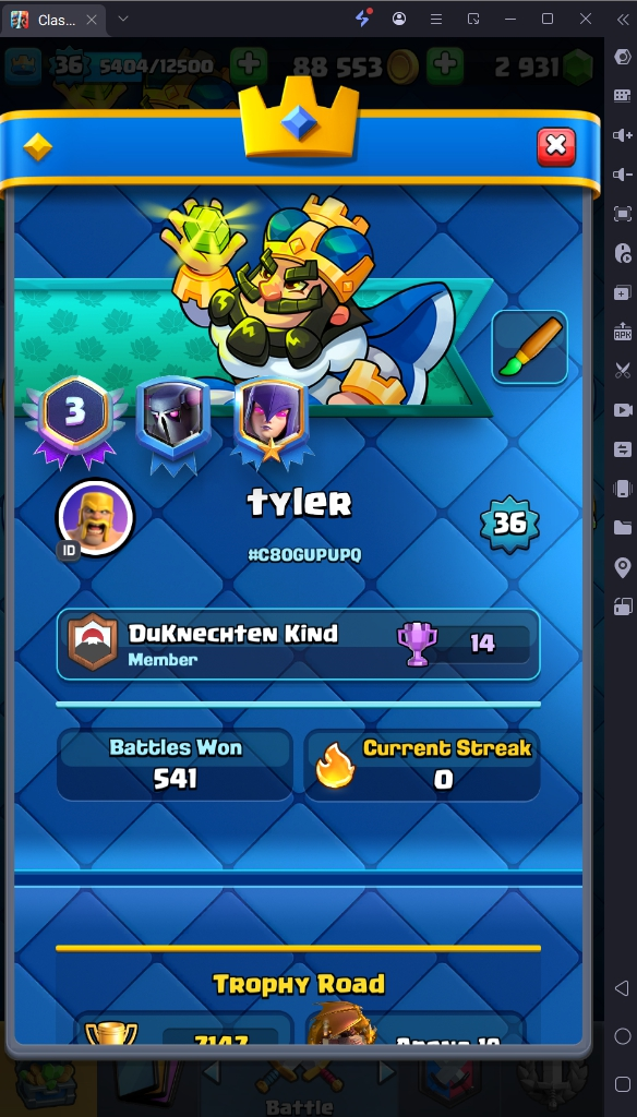 7147 TROPHY 🏆 36 LVL 💯 KT 12 👑 118 CARDS ♦️ 2 MAX CARDS 👑 0 ELITE CARDS 🔮 4 EVO 💯 EMOTE 23 🎭 #C80GUPUPQ ⸱ TAG ACCOUNT ♥️