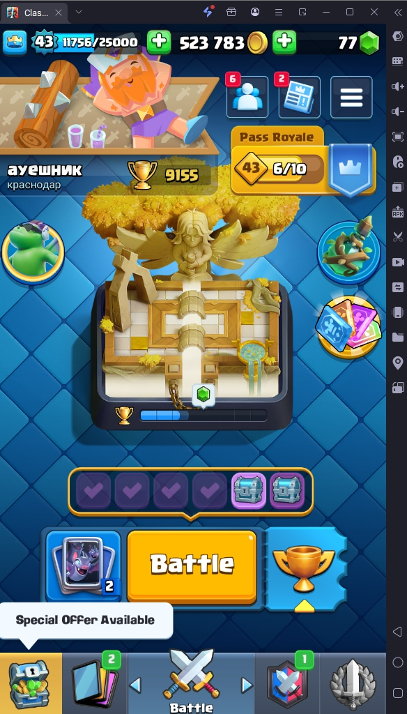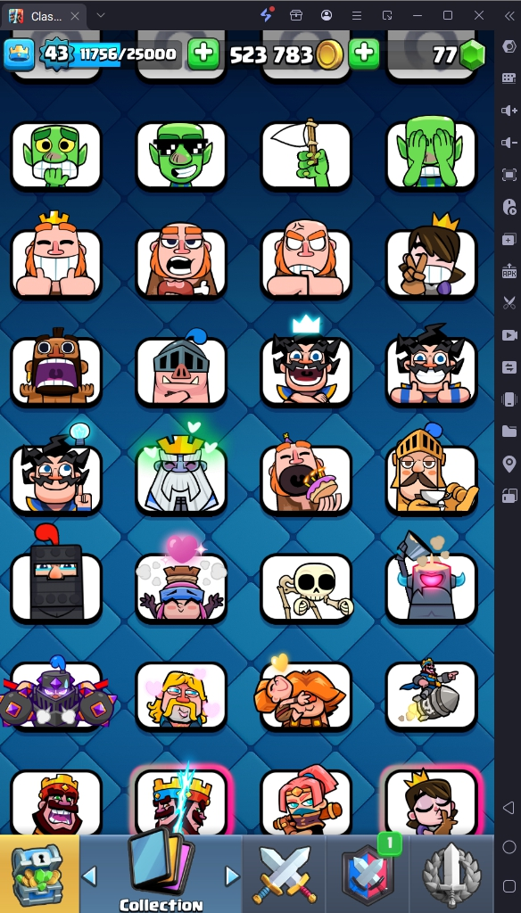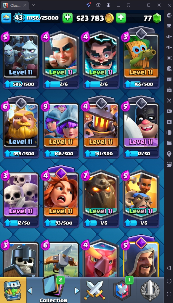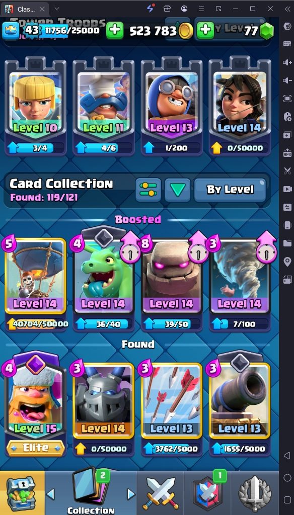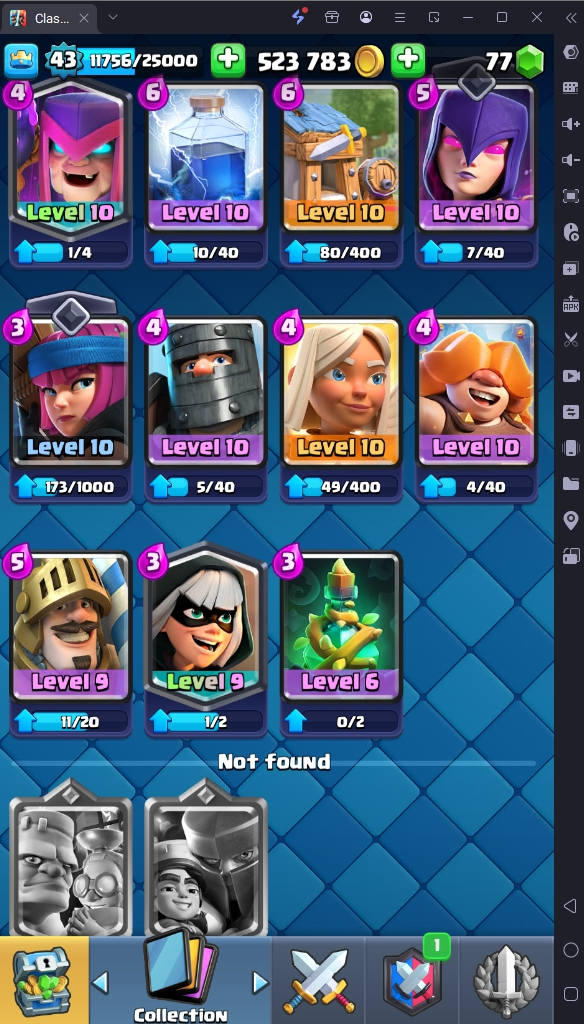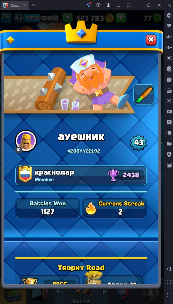 9155 TROPHY 🏆 43 LVL 💯 KT 14 👑 119 CARDS ♦️ 2 MAX CARDS 👑 1 ELITE CARDS 🔮 8 EVO 💯 EMOTE 44 🎭 #208YY22L92 ⸱ TAG ACCOUNT ♥️