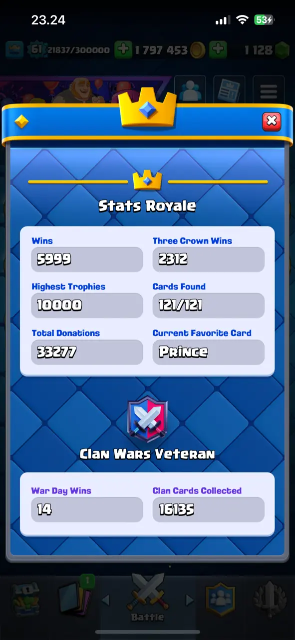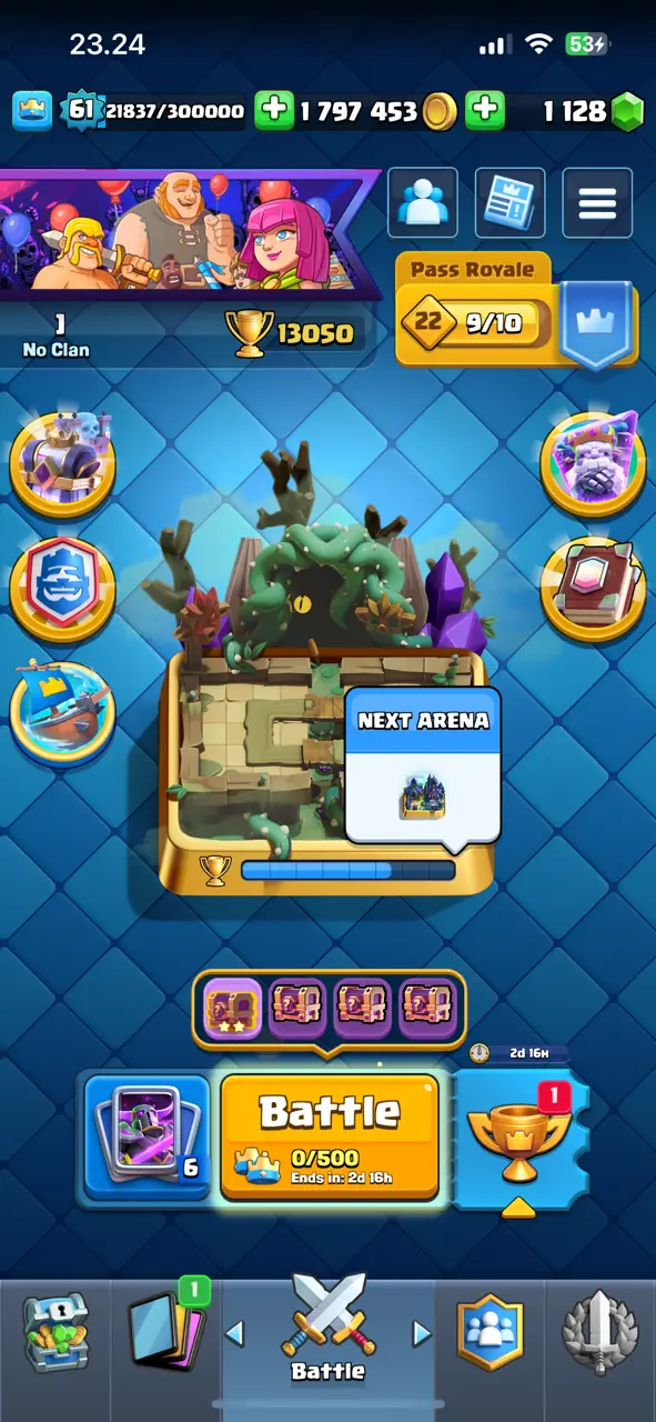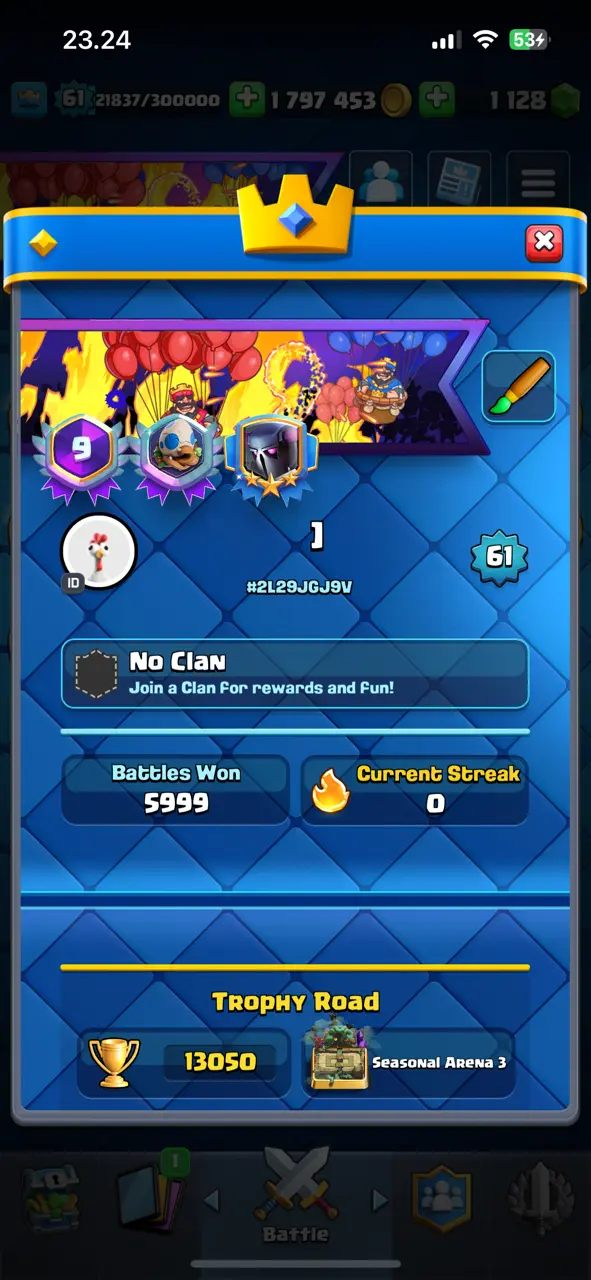 🔥 Awesome Rarest 🔥 CR Lv.61 🔥 9 Years Played 🔥 Change Name ON 🔥 Seasonal Arena 3 🔥 13050 Trophies 🔥 KT 15 🔥 17 Evo Cards 🔥 68 Max Cards & 27 Elites 🔥 179 Emotes 🔥 13 Tower Skins 🔥 [F2763] 🔥