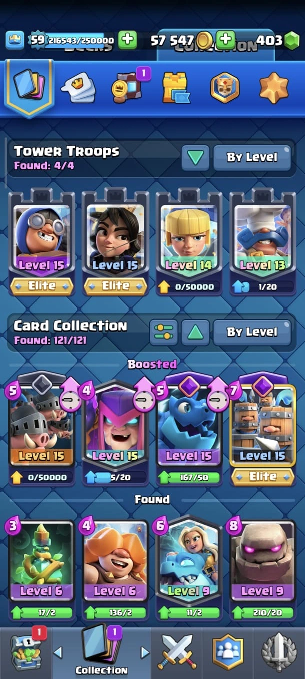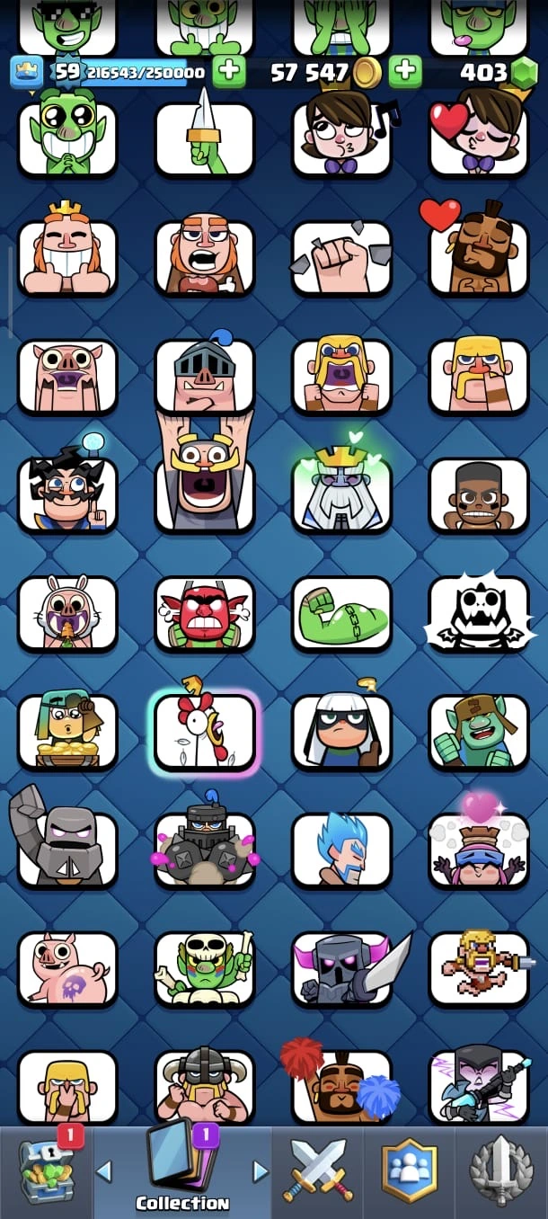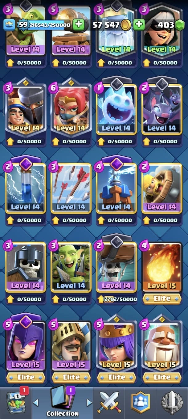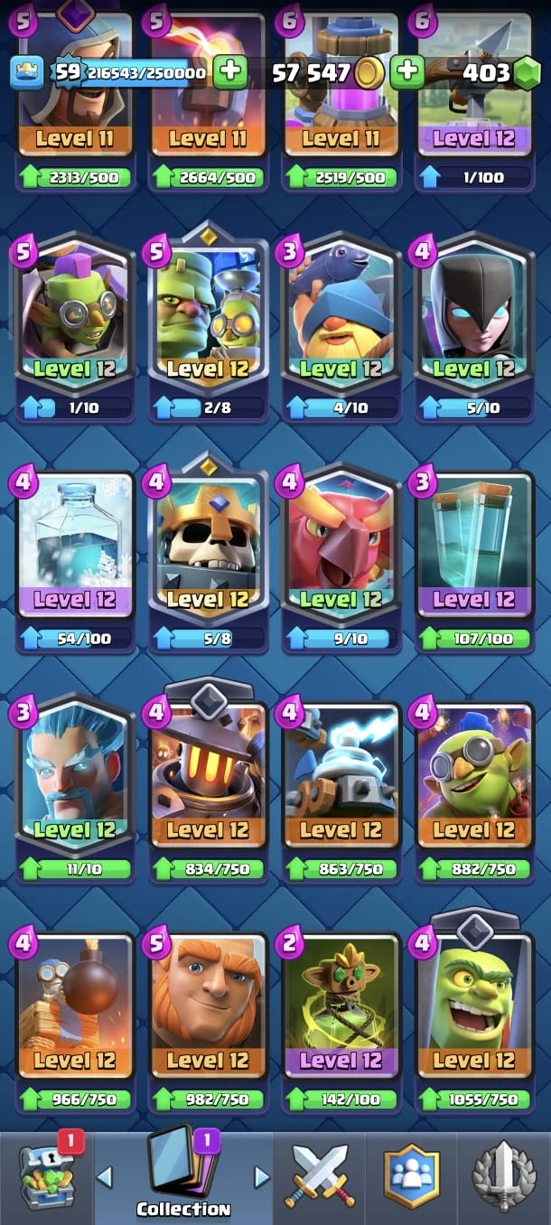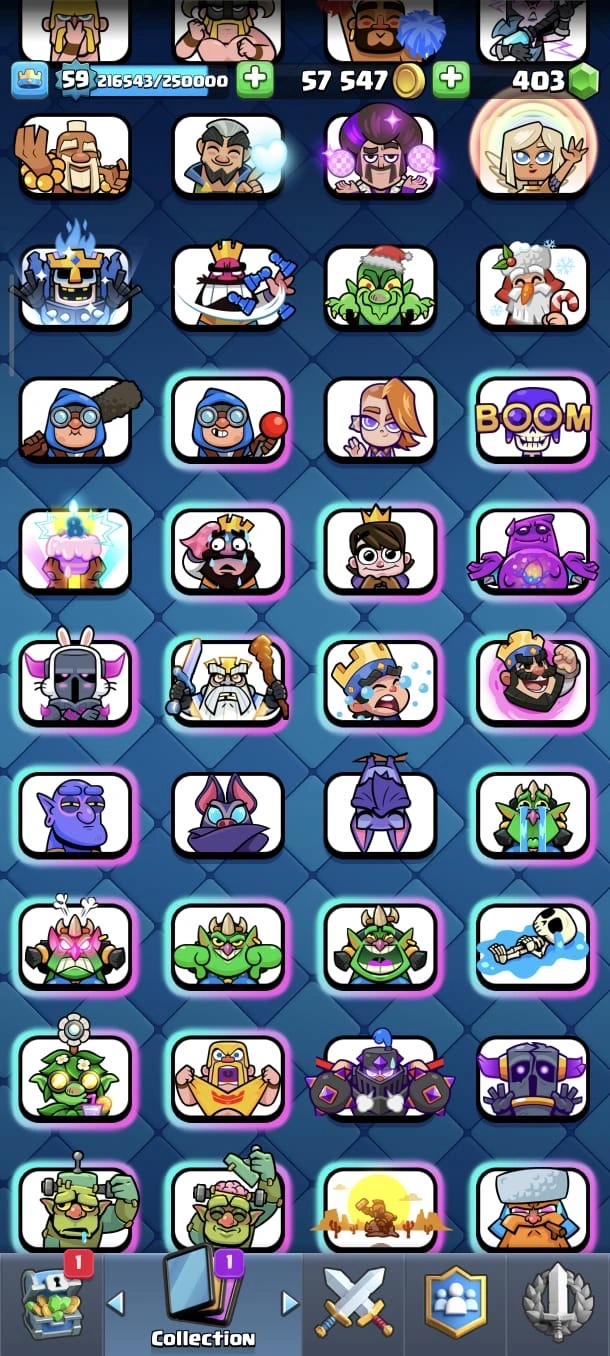 CR LV 59 🔥 Elite 23 🔥 Evo 20 🔥 Max Cards 50 🔥 Emote 127 🔥 Trophy 12000 🔥 Change name free🔥 Cheap & Safe account🔥