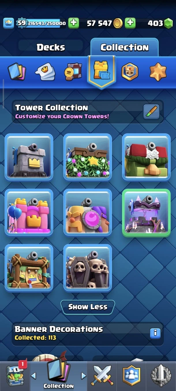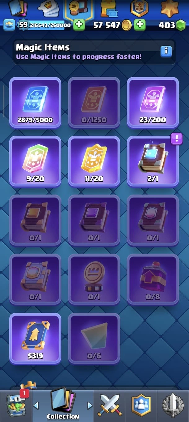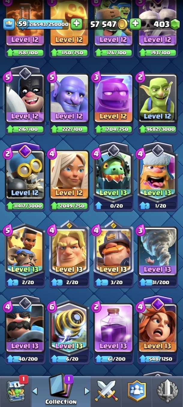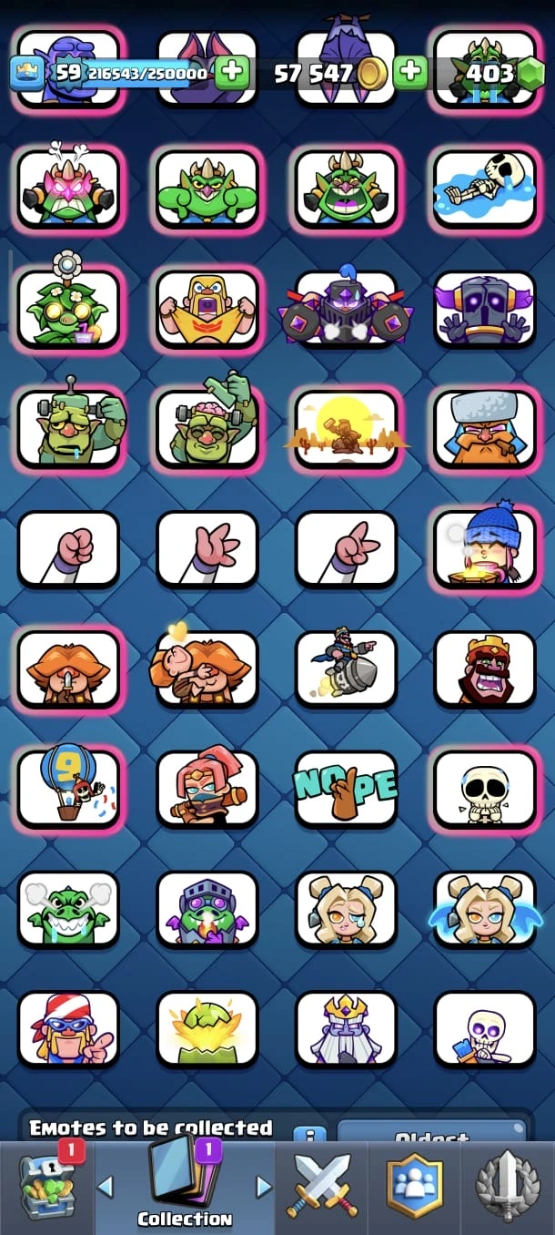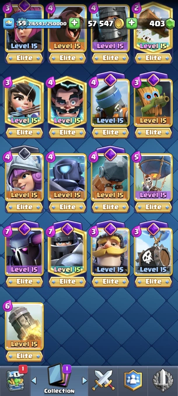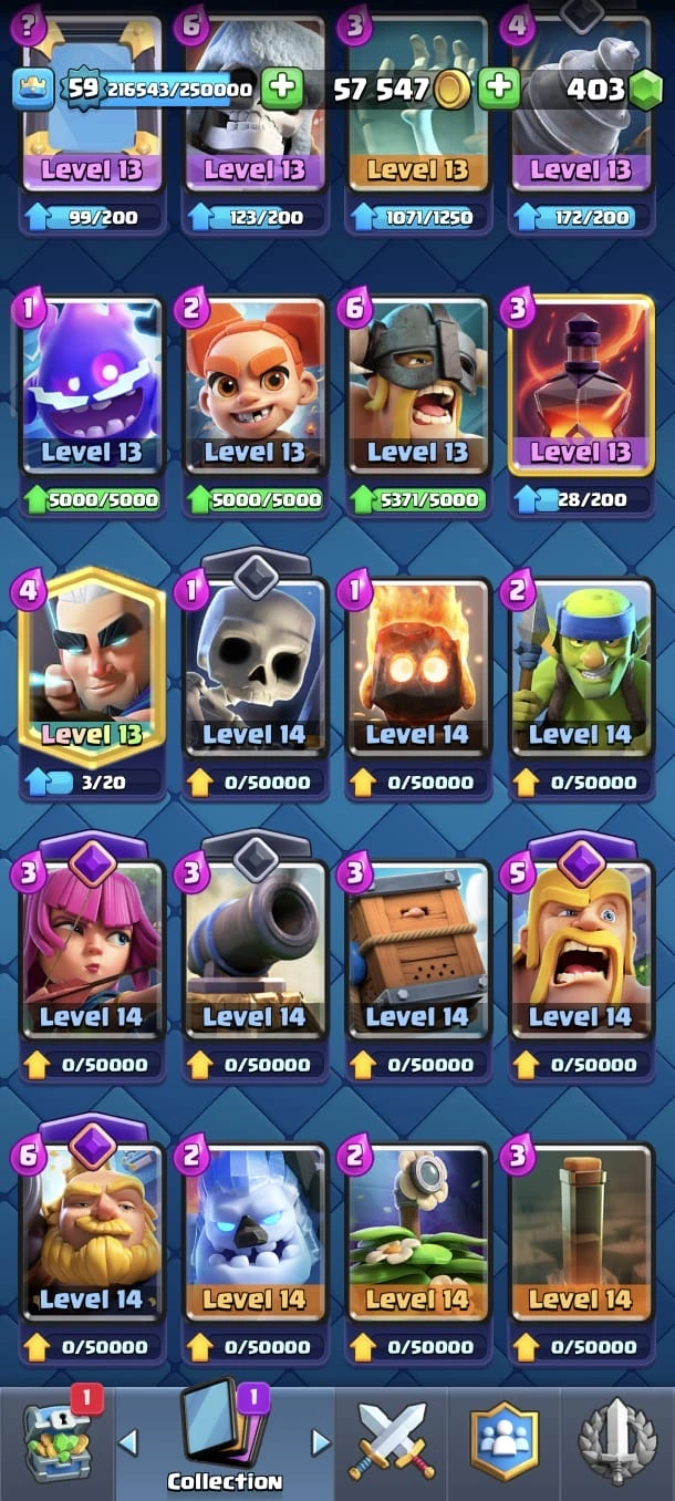 CR LV 59 🔥 Elite 23 🔥 Evo 20 🔥 Max Cards 50 🔥 Emote 127 🔥 Trophy 12000 🔥 Change name free🔥 Cheap & Safe account🔥