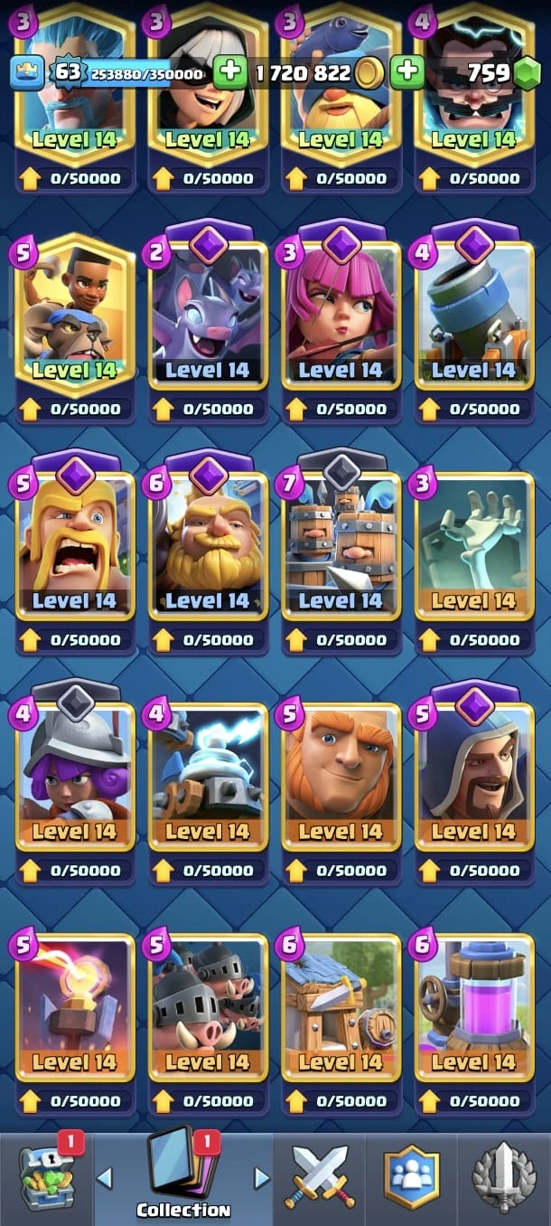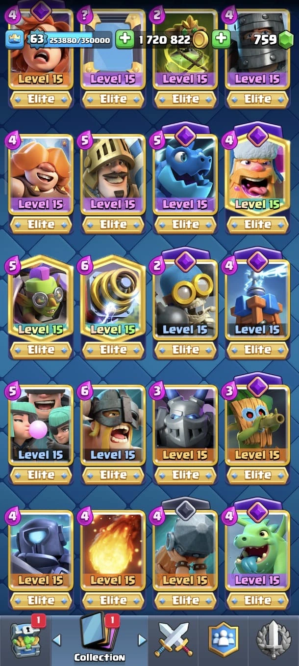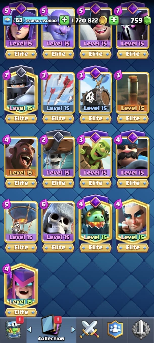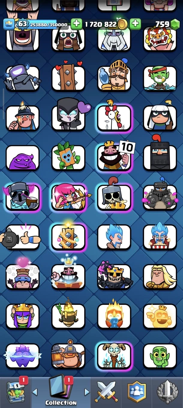 CR LV 63 🔥 Good Evo 24 🔥 Max Cards 110 🔥 Elite 40 🔥 Emote 141 🔥 Trophy 13500 🔥