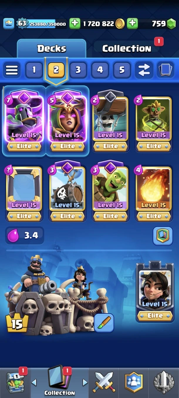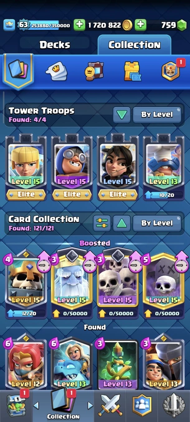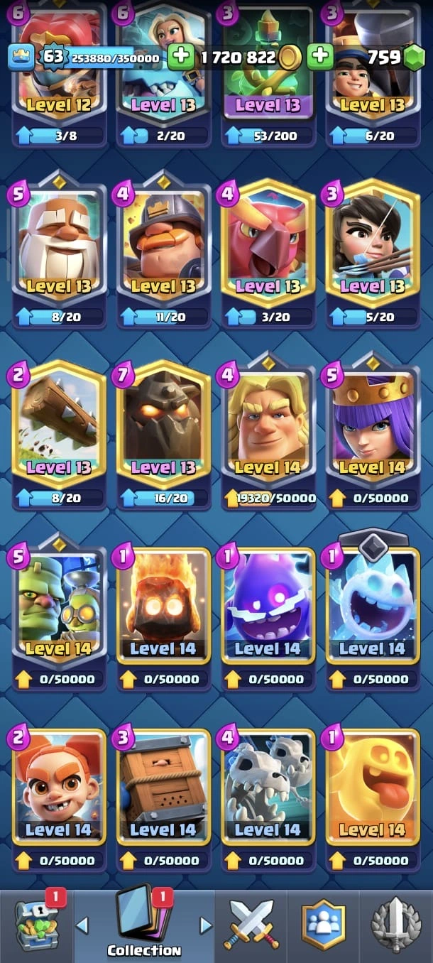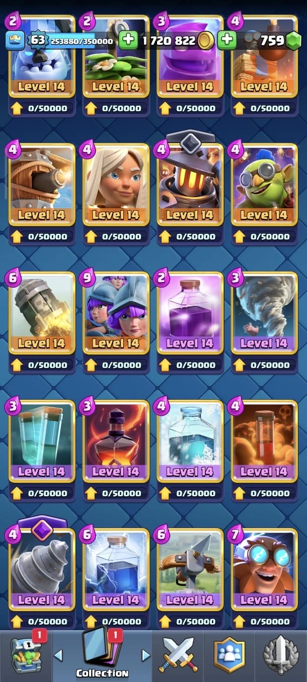 CR LV 63 🔥 Good Evo 24 🔥 Max Cards 110 🔥 Elite 40 🔥 Emote 141 🔥 Trophy 13500 🔥