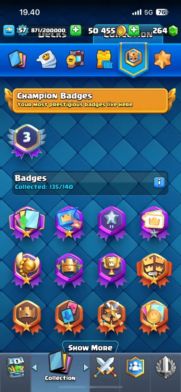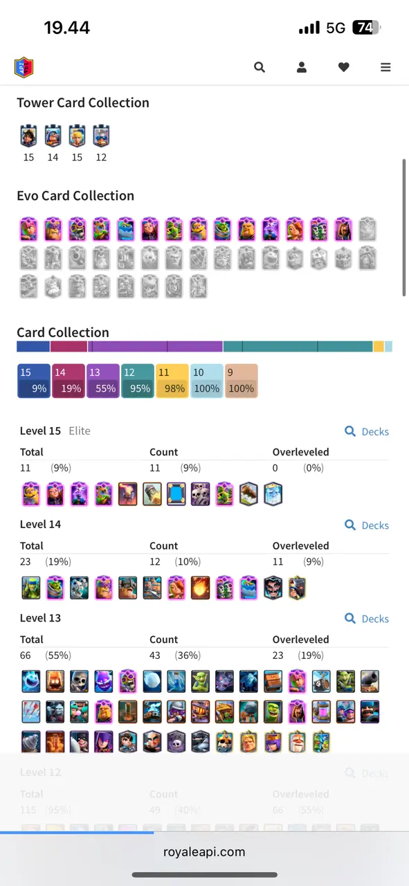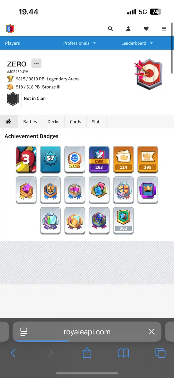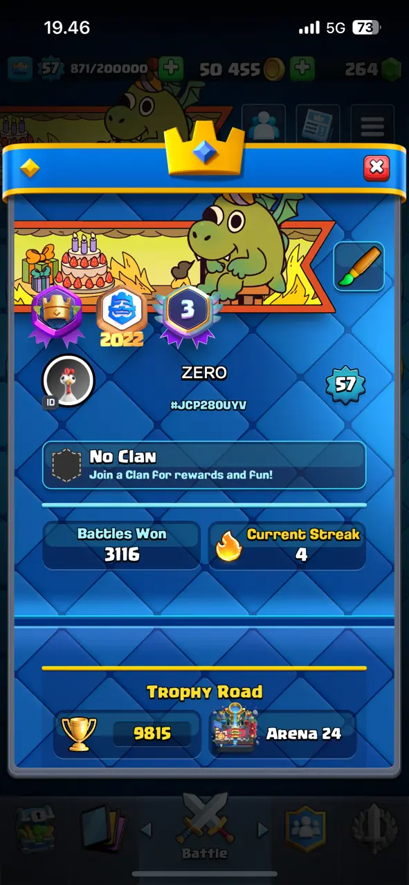 🔥 CRL 2022 Badge 🔥 CR Lv.57 🔥 Arena 24 🔥 9815 Trophies 🔥 KT 15 🔥 14 Evo Cards 🔥 23 Max Cards & 11 Elites 🔥 124 Emotes 🔥 13 Tower Skins 🔥 [F2686] 🔥
