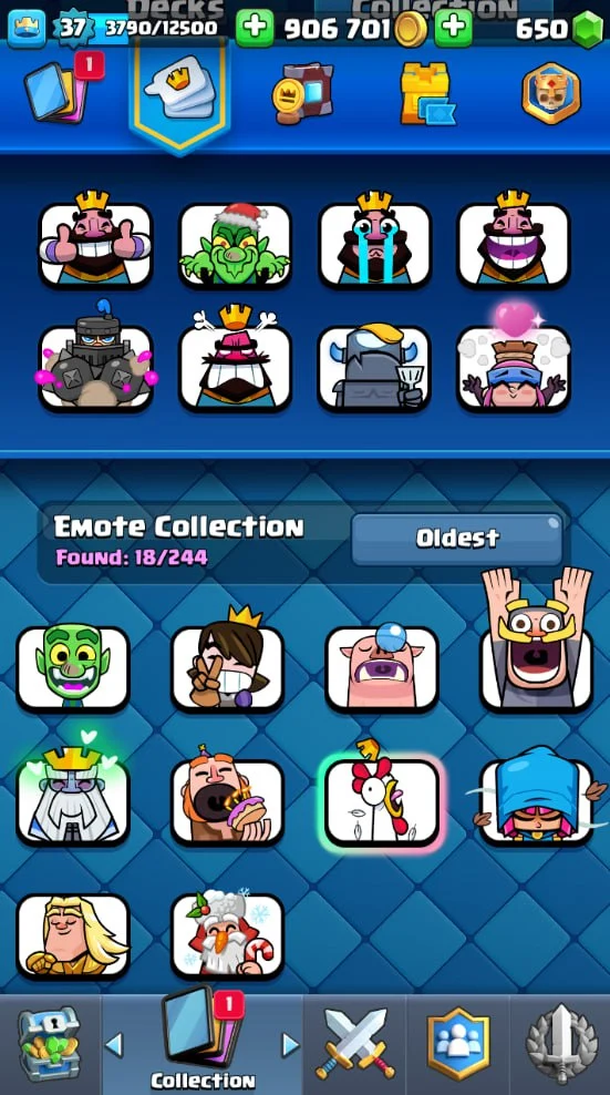👑 KT 12 👑 7157 Trophy 👑 37 LVL 👑 115 Cards 👑 18 Emotes 👑 650 Gems 👑 906 k Gold 👑 + Brawl Stars 11k Cups 👑