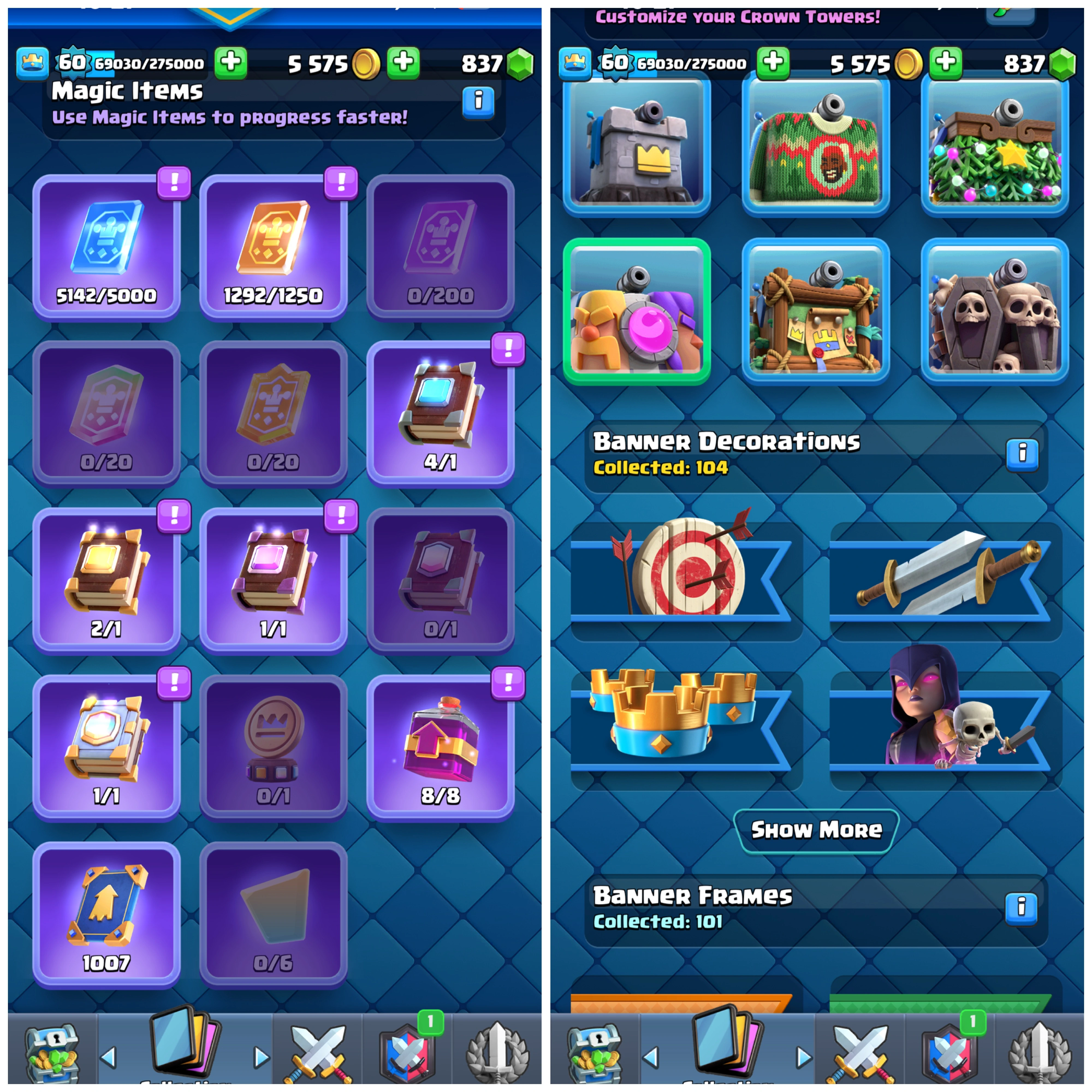 Premium KT 15 (LVL.60)✅111 CARDS MAX✅EVO-17✅EMOTES-91✅9323 TROPHY✅NC-1K✅ITEMS VERY GOOD✅6 CARDS EACH HAS 3 EVO SHARD✅ANDROID & IOS