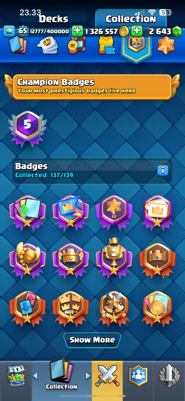 🔥 RAREST 30 EVO 🔥 CR Lv.65 🔥 5 Years Played 🔥 Free Change Name 🔥 Seasonal Arena 1 🔥 10000 Trophies 🔥 KT 15 🔥 30 Evo Cards 🔥 118 Max Cards & 49 Elites 🔥 225 Emotes 🔥 24 Tower Skins 🔥 [F2764] 🔥