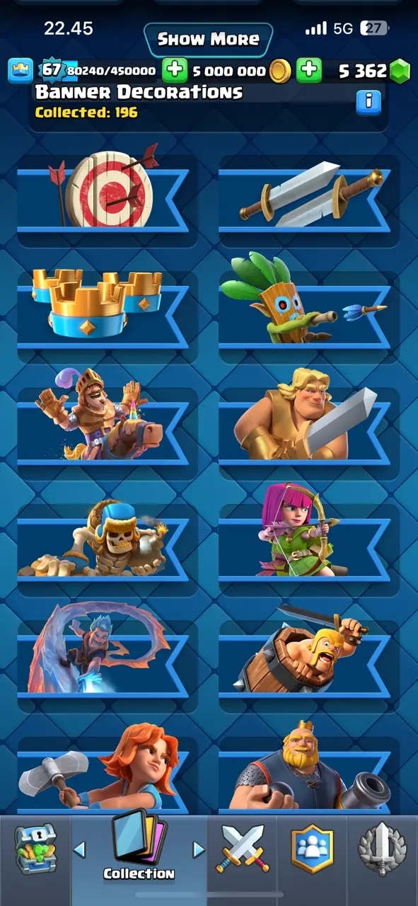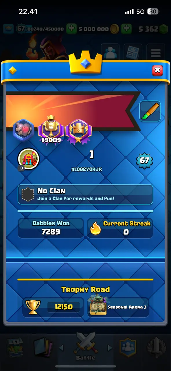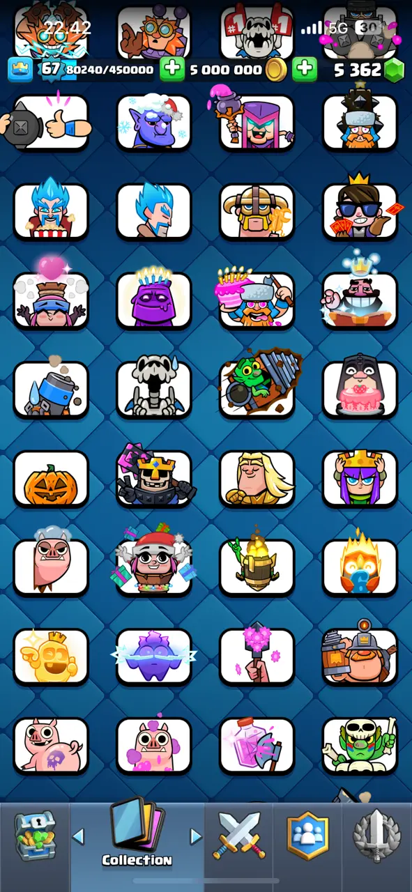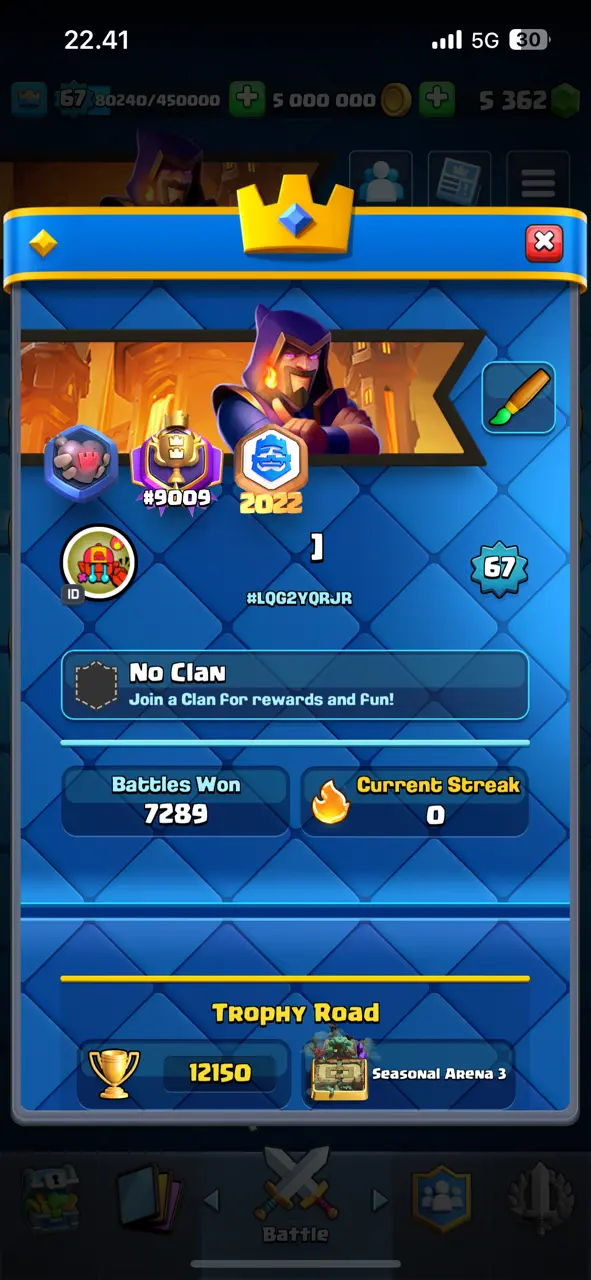 🔥 !ULTIMATE MAX RAREST! 🔥 CR Lv.67 🔥 Change Name ON 🔥 Seasonal Arena 3 🔥 12150 Trophies 🔥 KT 15 🔥 36/38 Evo Cards 🔥 121/121 Max Cards & 64 Elites 🔥 394/394 Emotes 🔥 74 Tower Skins 🔥 [F2761] 🔥