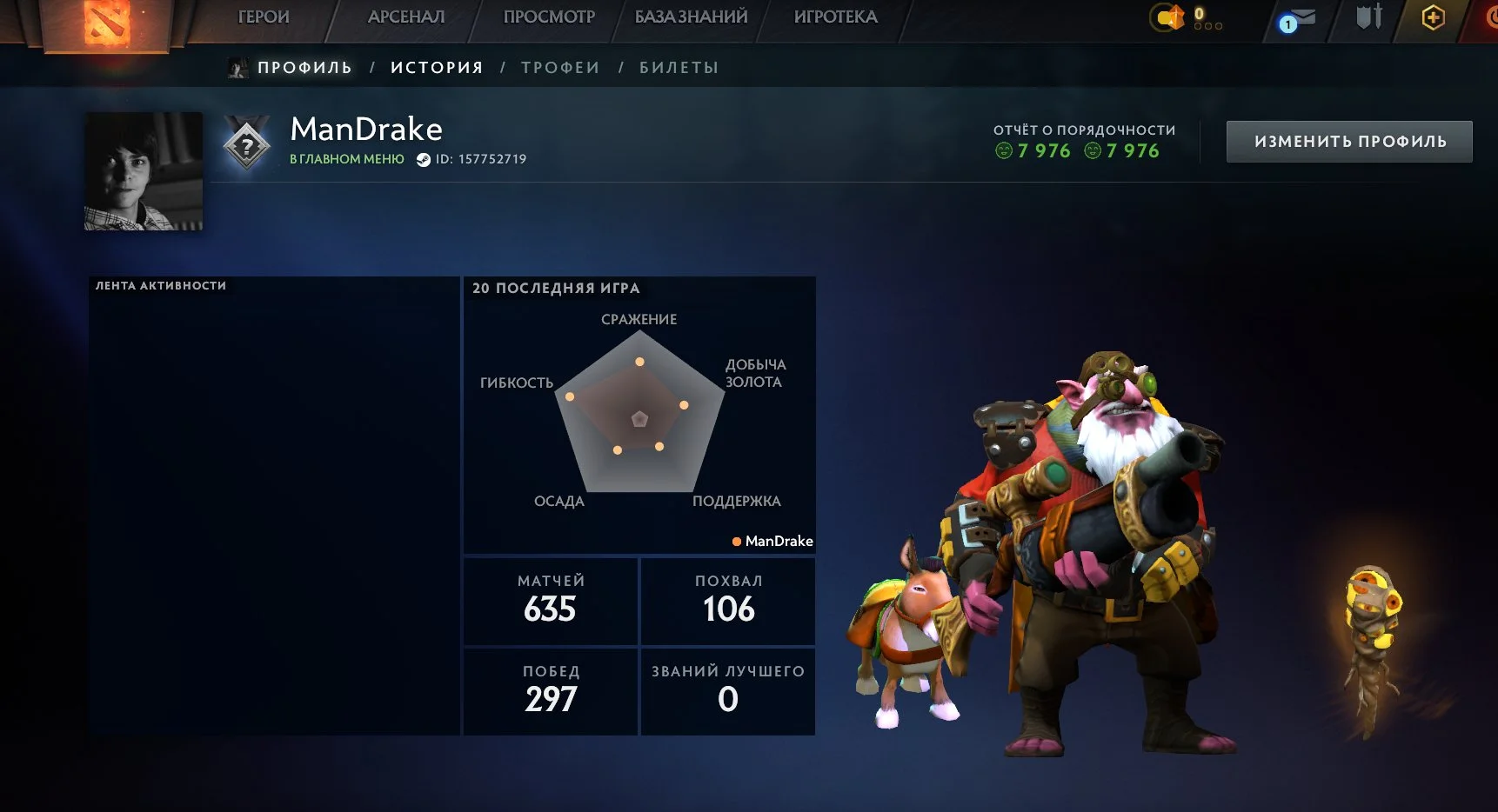 ✅ Calibration🌟0% ~{1300} mmr🌟7976 integrity🌟635 matches🌟34 trophy level ✅