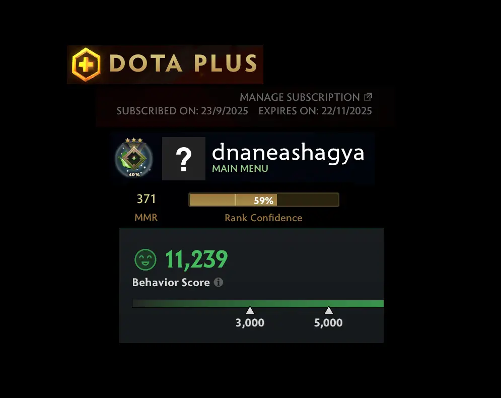 Herald 3 (40%) 🔥 371 MMR + 11239 Behavior 🔥 DOTA PLUS🔥