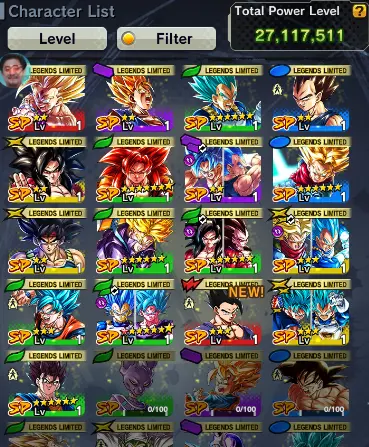 LVL168. 8star majin vegeta+8star super saiyan 4 gogeta+vegito.17 legends limited