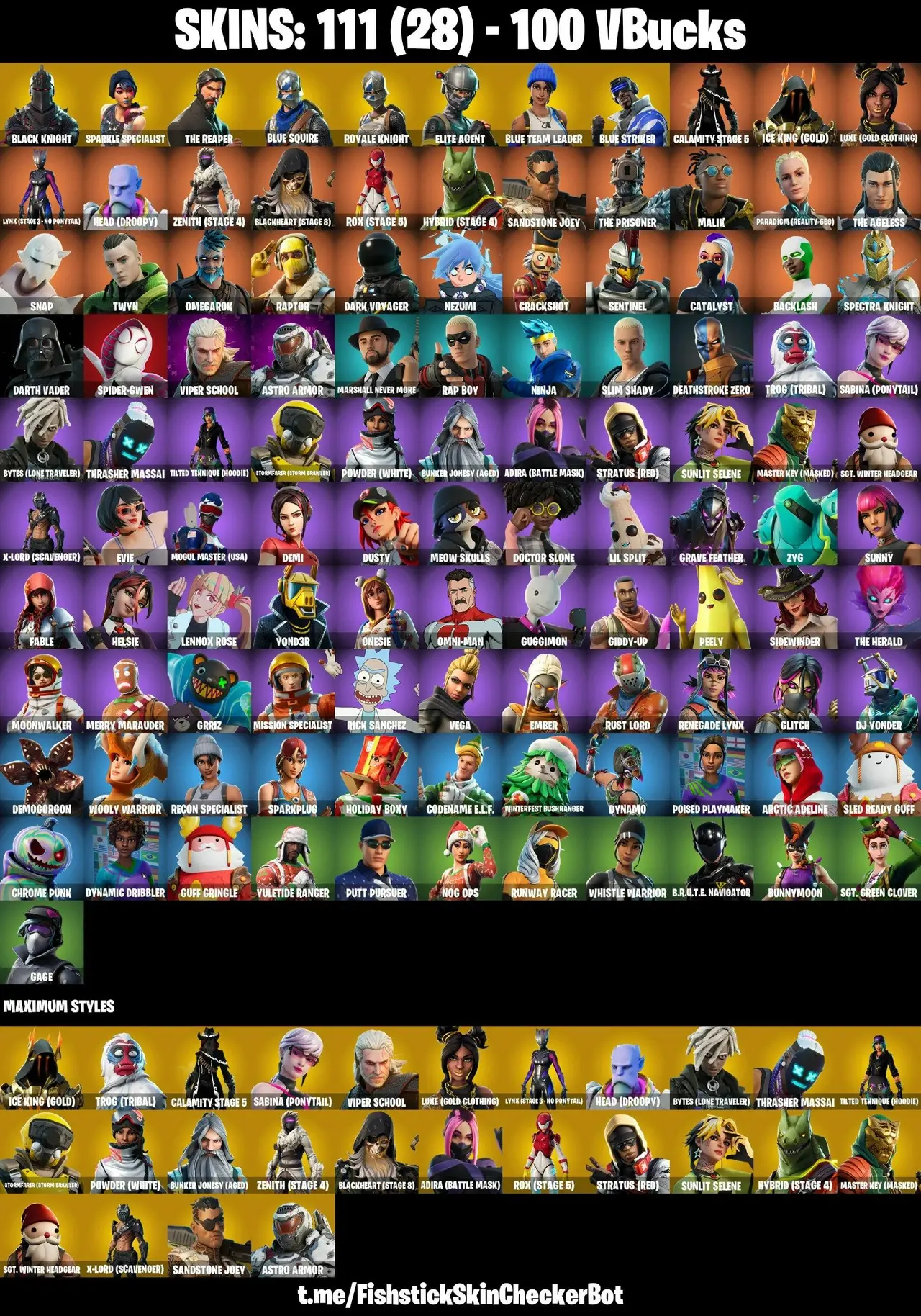 🌟 111 Skins [PC/PSN/XBOX] ⚔️ Black Knight ✨ Sparkle Specialist 💀 The Reaper 👑 Royale Knight 💙 Blue Team Leader 💃 Take The L 🚀 FO712