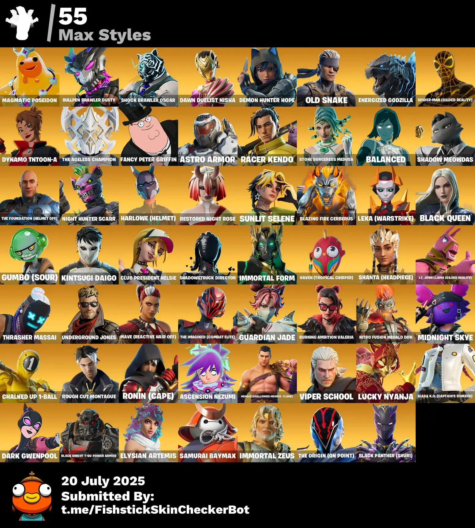 🐉 113 skins [PC] 💫 Peter Griffin ⚔️ The Imagined ⚡ Zeus 🌙 Nezumi 🔥 Ronin 💀 Hades 🛡️ The Foundation 🦾 Menace 👹 Predator 🎮 FTN141