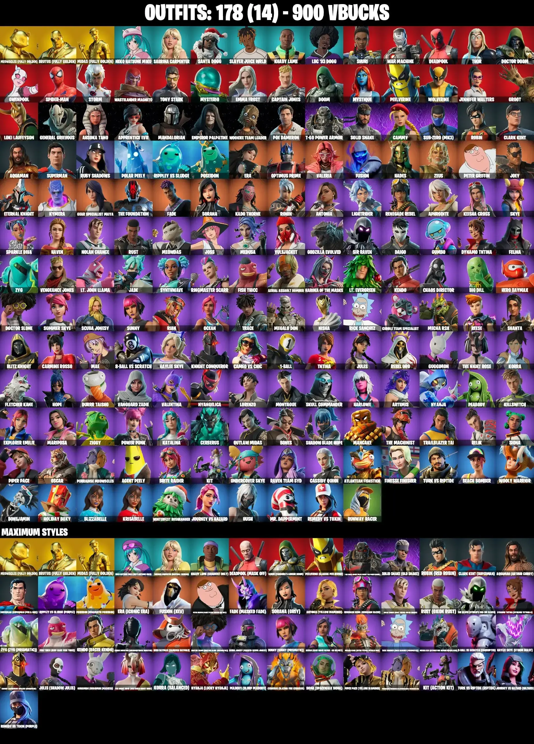178 SKINS | CAMMY | MANDALORIAN | RUSHIN AROUND | SPIDER-MAN | GENERAL GRIEVOUS | AHSOKA TANO | APPRENTICE EVIE | EMPEROR PALPATINE | WOOKIE TEAM LEADER | POE DAMERON | SUB-ZERO MK3 | OUTLAW MIDAS | ERA MAX | CHAOS DIRECTOR MAX |