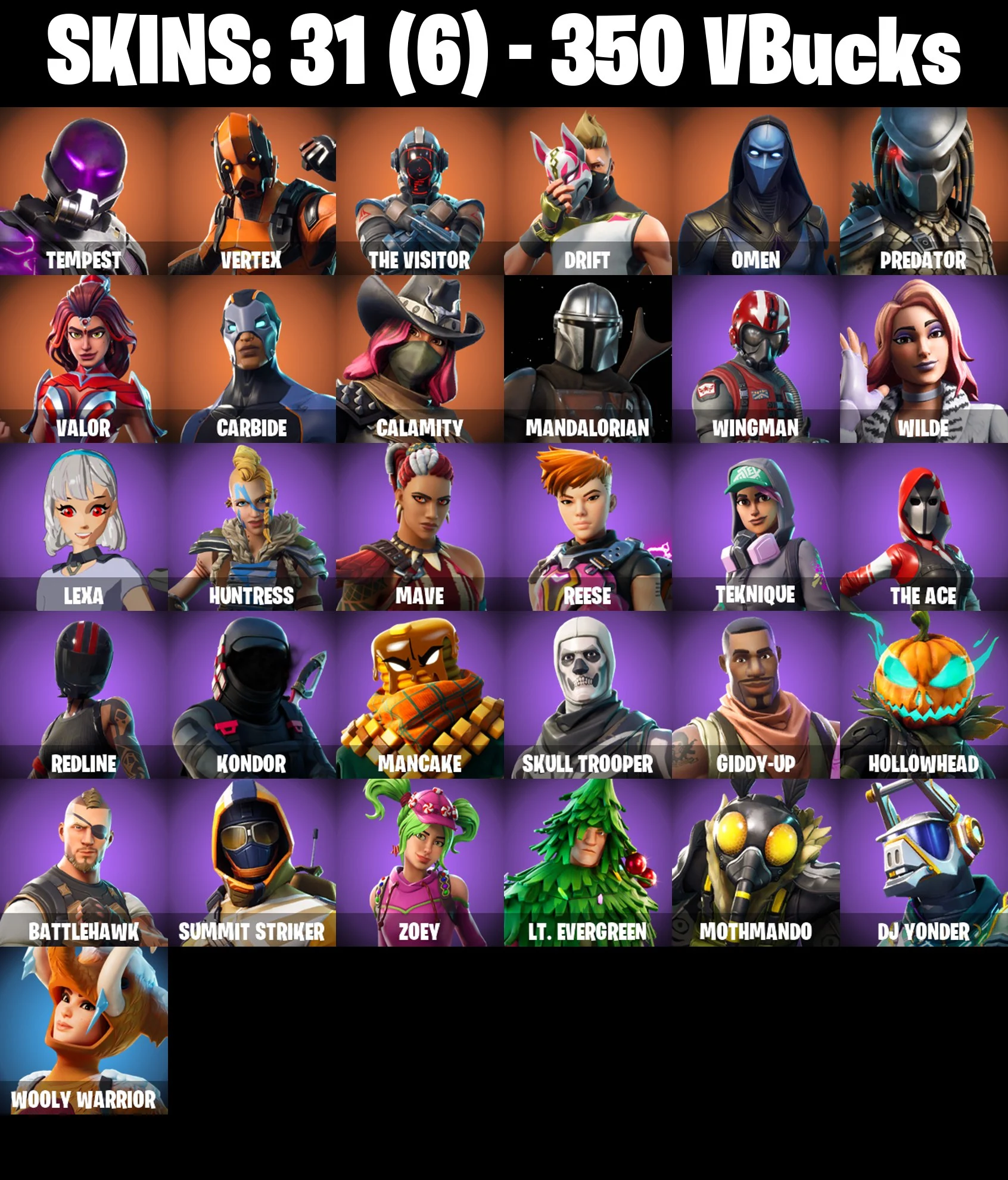 🎆31 SKINS ⚡️PC/PSN⚡️ TEMPEST 👑 VERTEX 👑 THE VISITOR 👑 DRIFT 👑 OMEN 👑 PREDATOR 👑 VALOR 👑 CARBIDE 👑 CALAMITY 👑 MANDALORIAN 👑 WINGMAN 👑 WILDE ⚡️ 350 VB #M652