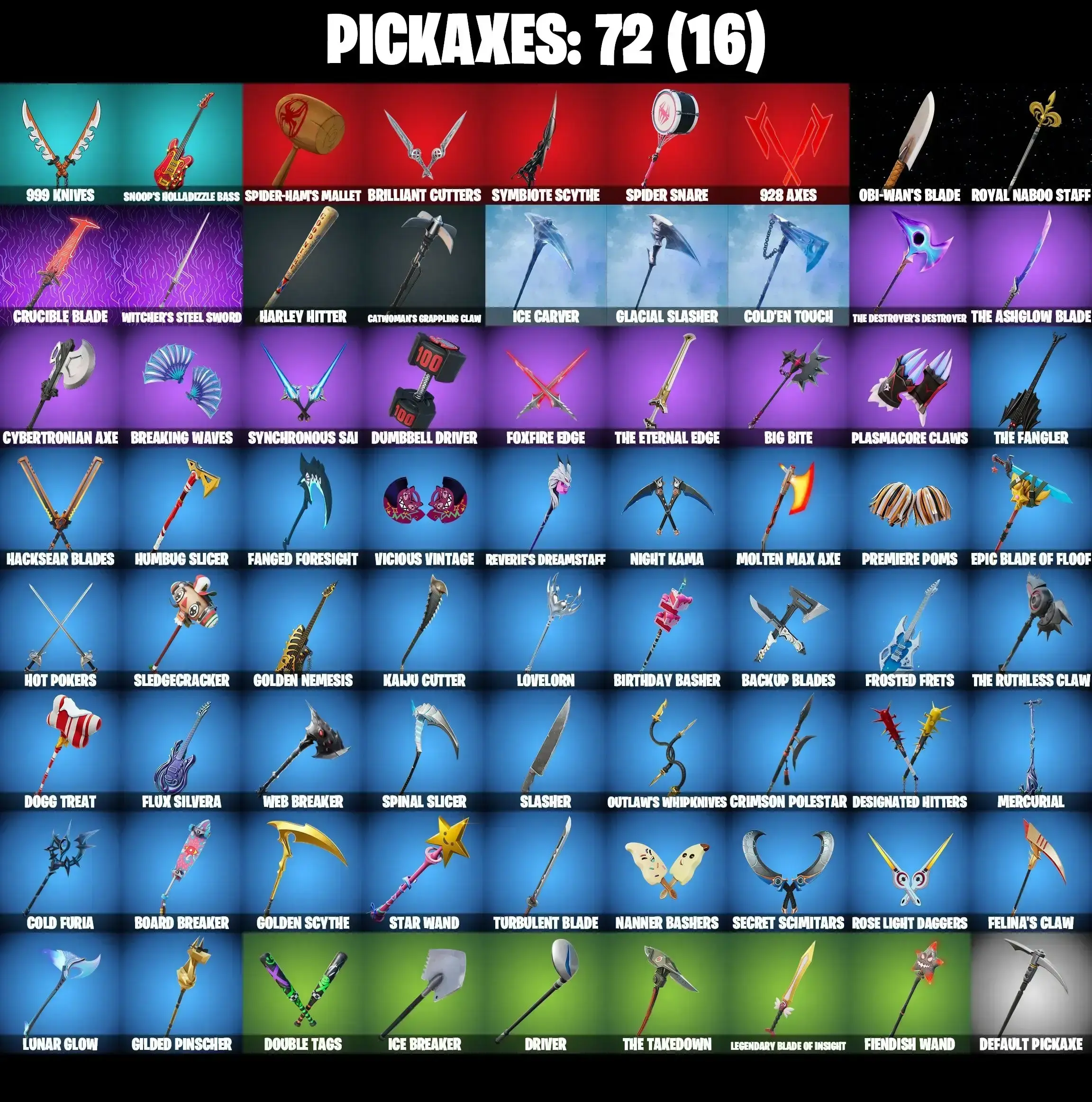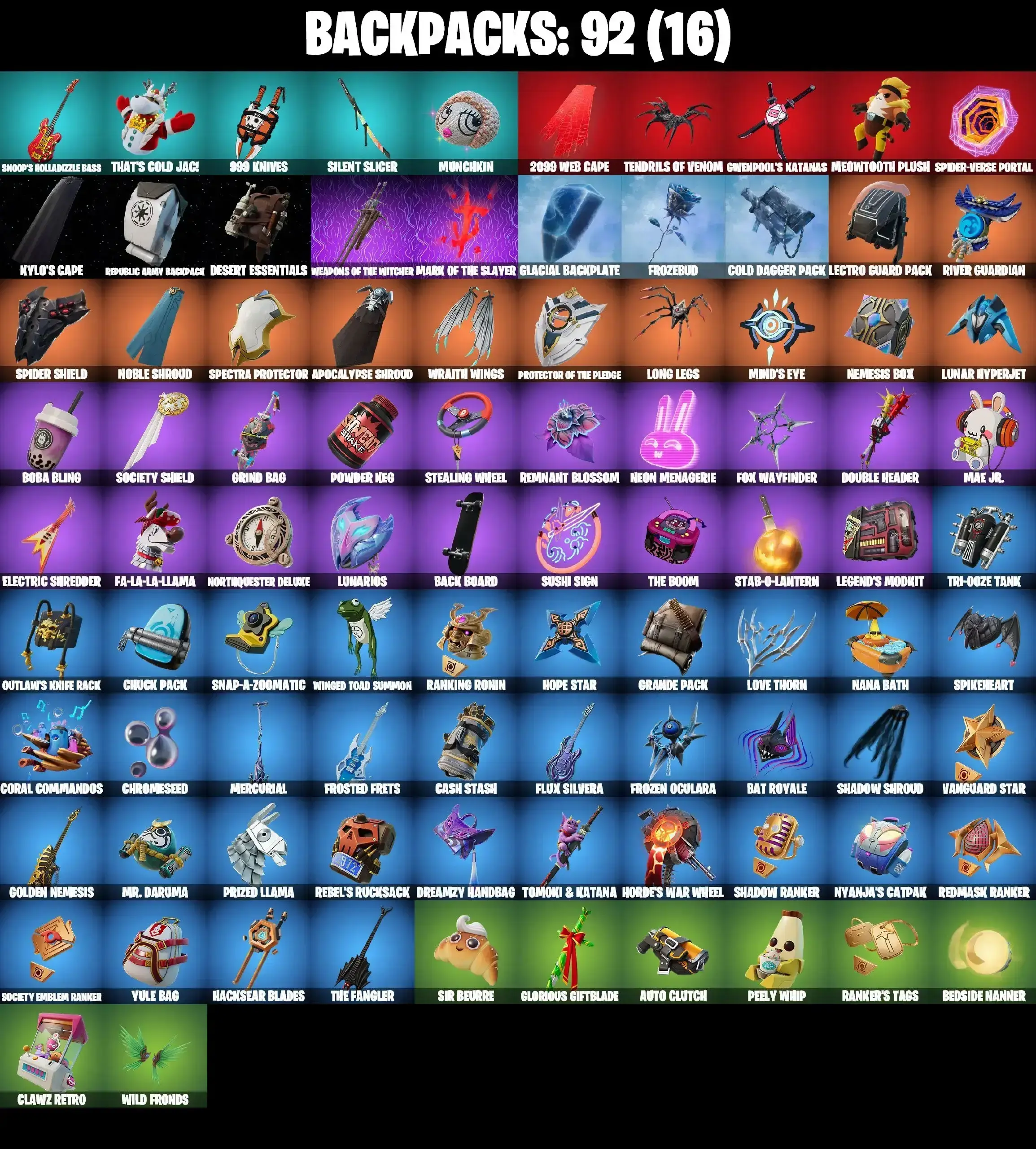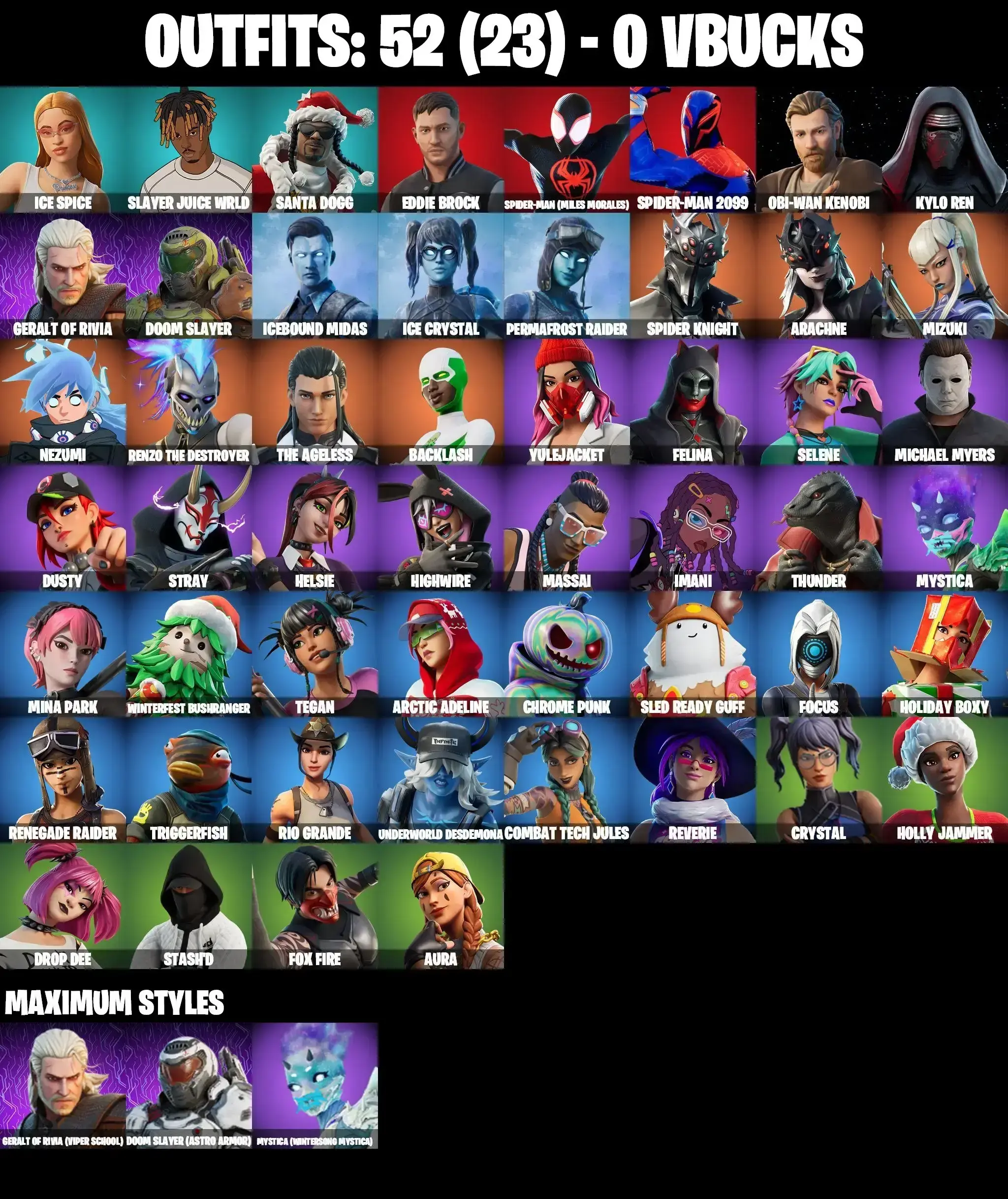 52 SKINS | BACKLASH | JABBA SWITCHWAY | GET GRIDDY | SPIDER-MAN MILES MORALES | SPIDER-MAN 2099 | OBI-WAN KENOBI | KYLO REN | MINA PARK | STAR WAND | MICHAEL MYERS | MYSTICA MAX | REVERIE | AURA | HELSIE | HOLLY JAMMER | ICE BREAK