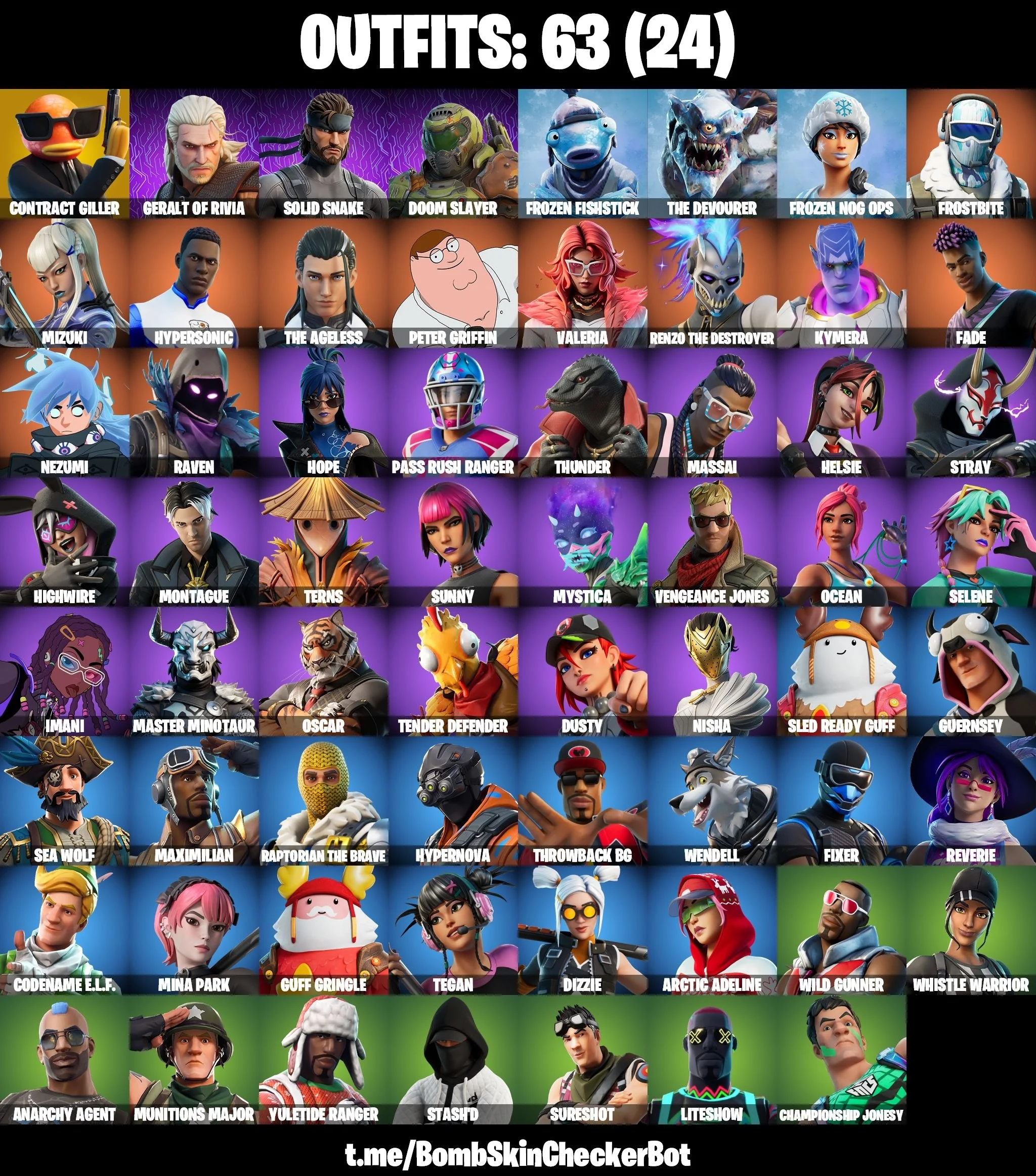 63 Skins | Doom Slayer | Solid Snake | Geralt of Rivia | Peter Griffin | Raven | Renzo the Destroyer | Kymera | Mystica | Valeria | BP Exclusive Skins #602