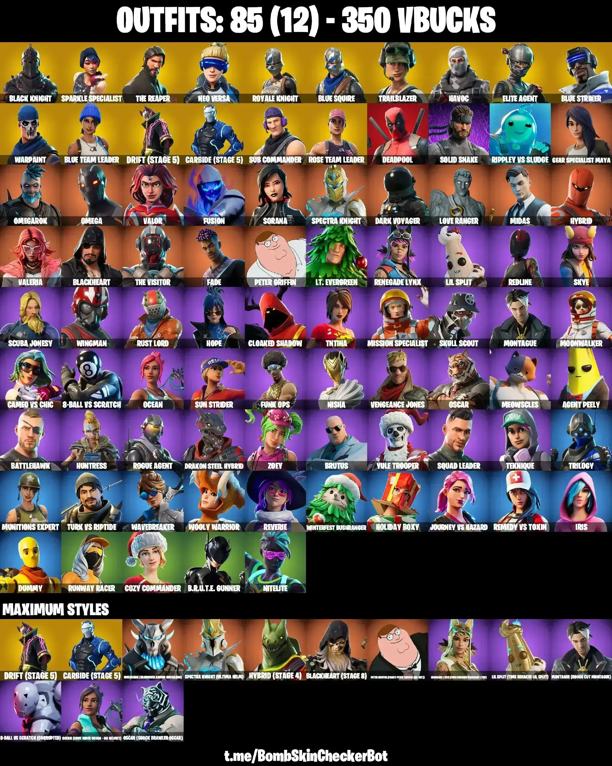 85 SKINS | BLACK KNIGHT | NEO VERSA | TAKE THE L | MAKO | THE REAPER | TRAILBLAZER | FREESTYLIN | ELITE AGENT | ROYALE KNIGHT | BLUE SQUIRE | FLOSS | THE WORM | OG STW | HAVOC | SUB COMMANDER | YULE TROOPER | OMEGA | ORANGE JUSTIC