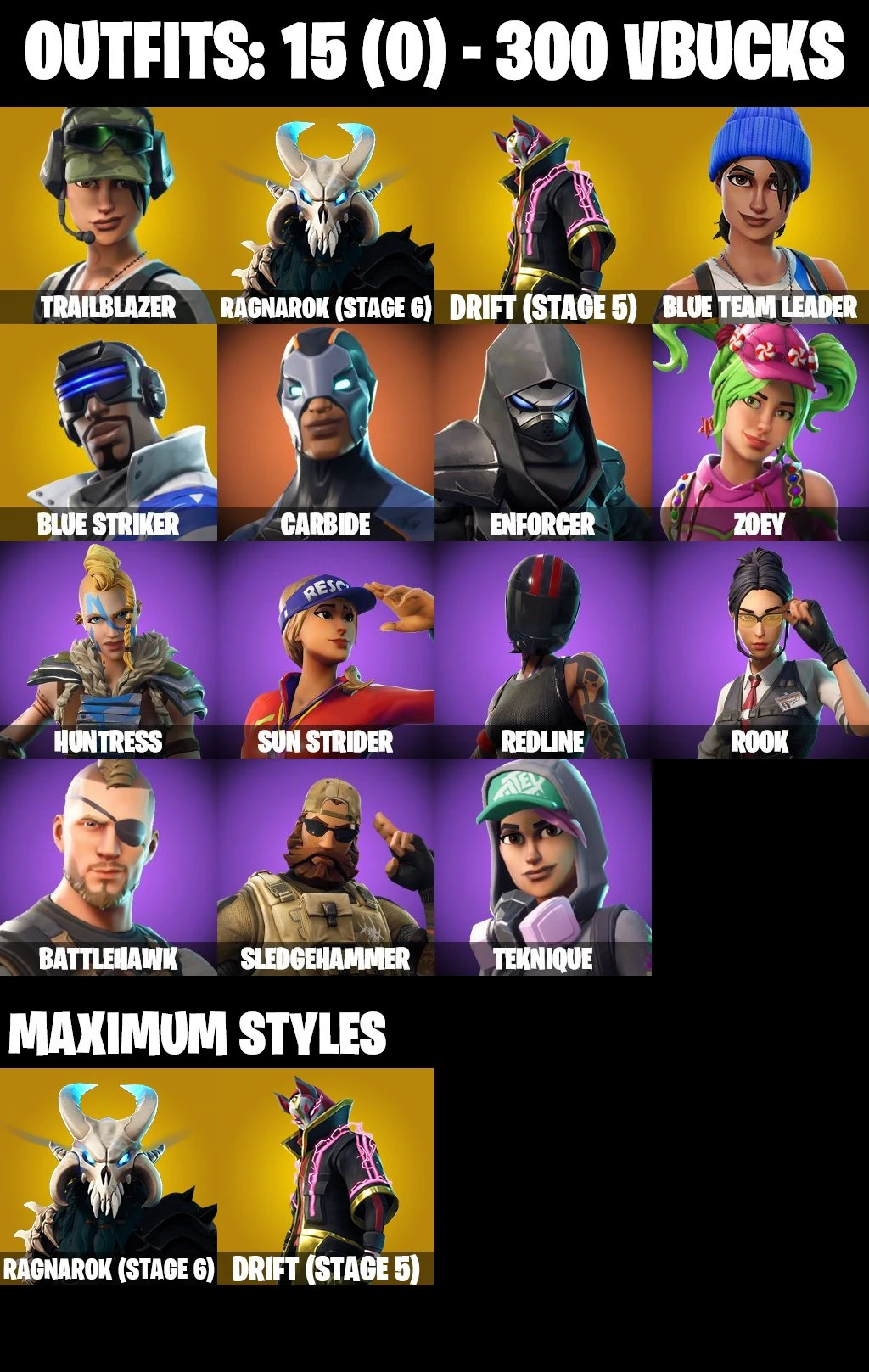 ALL PLATFORMS ⚡ 15 SKINS 💎 TRAILBLAZER 💜 RAGNAROK MAX 💜 DRIFT STAGE 5 💜 BLUE TEAM LEADER 💜 BLUE STRIKER 💜 ORANGE JUSTICE 💜 FLAPPY ⚡ FULL ACCESS