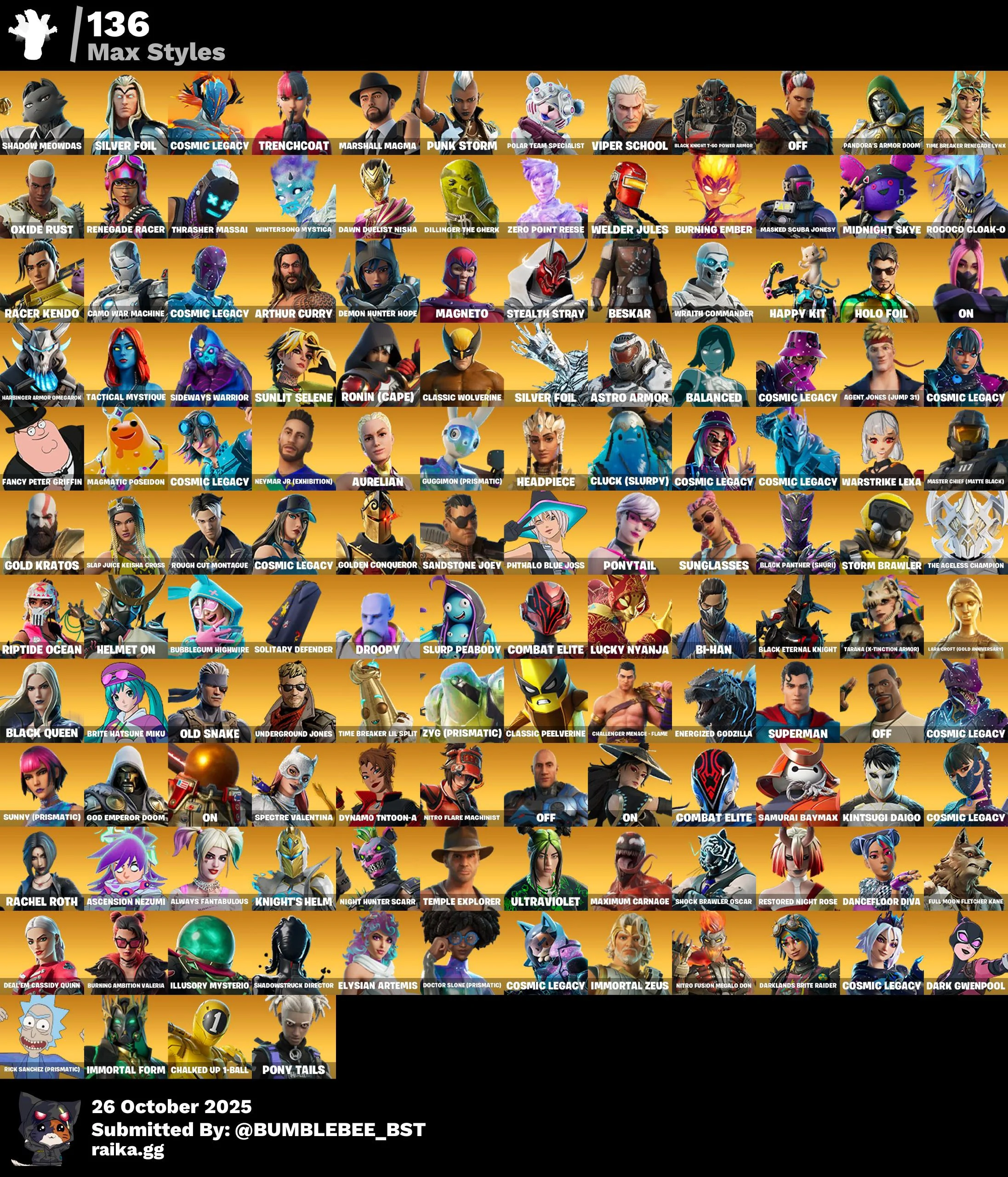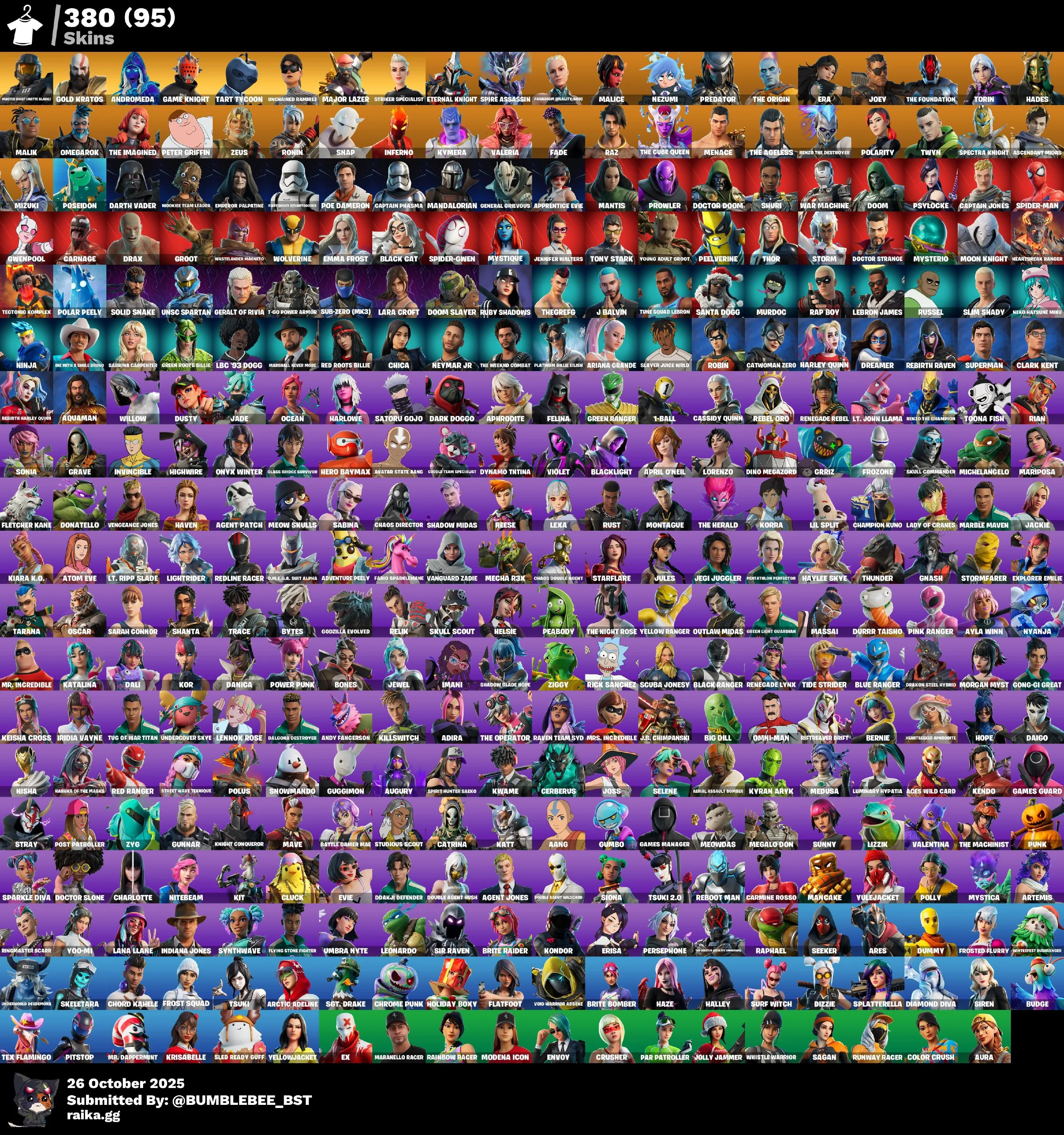 🔥 [ HALLOWEEN SALE ] 🔥 [PC/PSN/XBOX ] 380 SKINS | Master Chief (Matte Black) | Gold Kratos | Andromeda | Game Knight | Tart Tycoon | Unchained Ramirez | Major Lazer | 350 VB