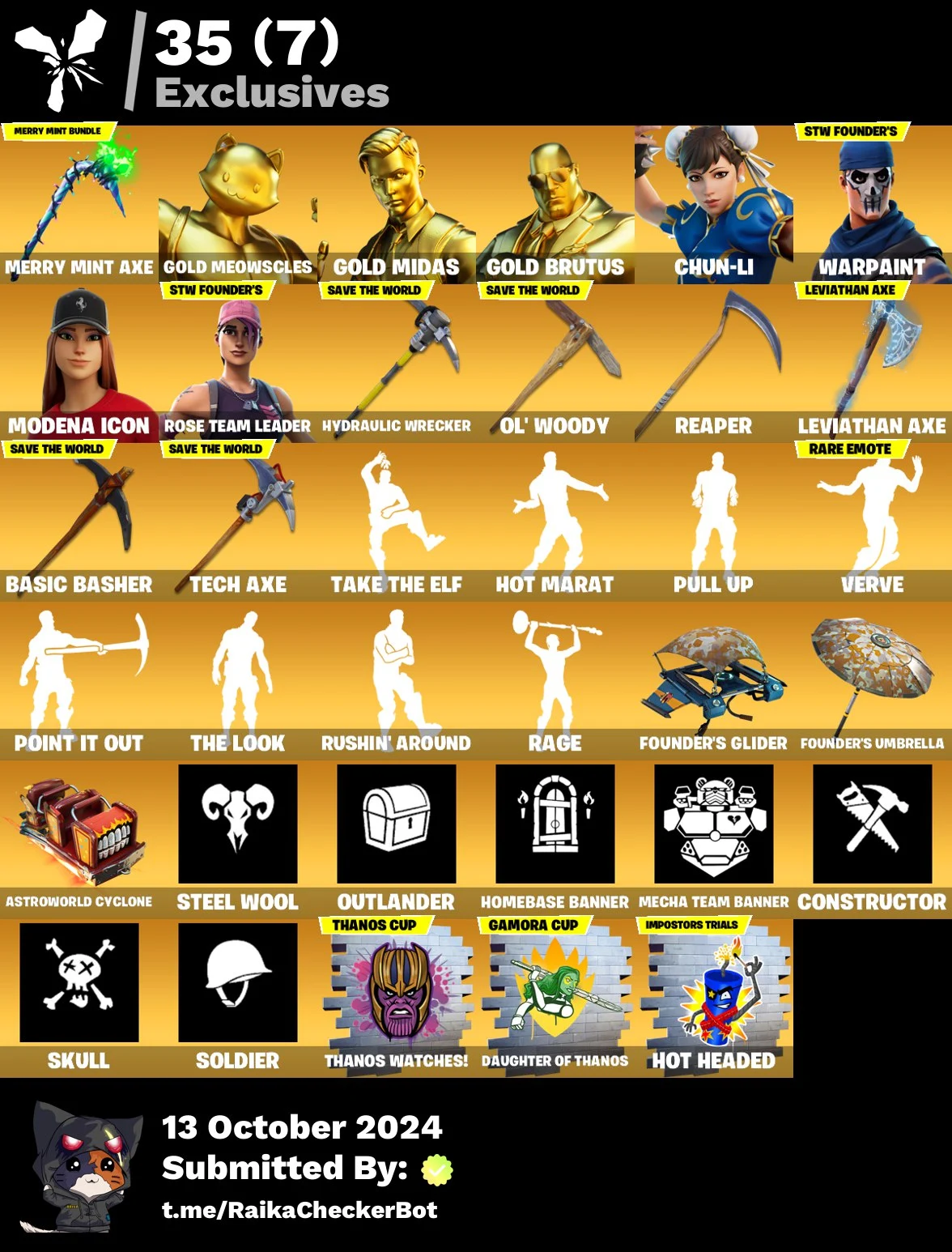 ⭐ Inactive for 3 years | Mail changenable | 181 skins | Inactive for 3 years | leviathan axe | OG STW | Merry Mint Axe | Gold Meowscles | Gold Midas | Gold Brutus | Chun Li | Modena Icon | Luxe | Rox | Galaxy Scout | Vendetta | 195 VB