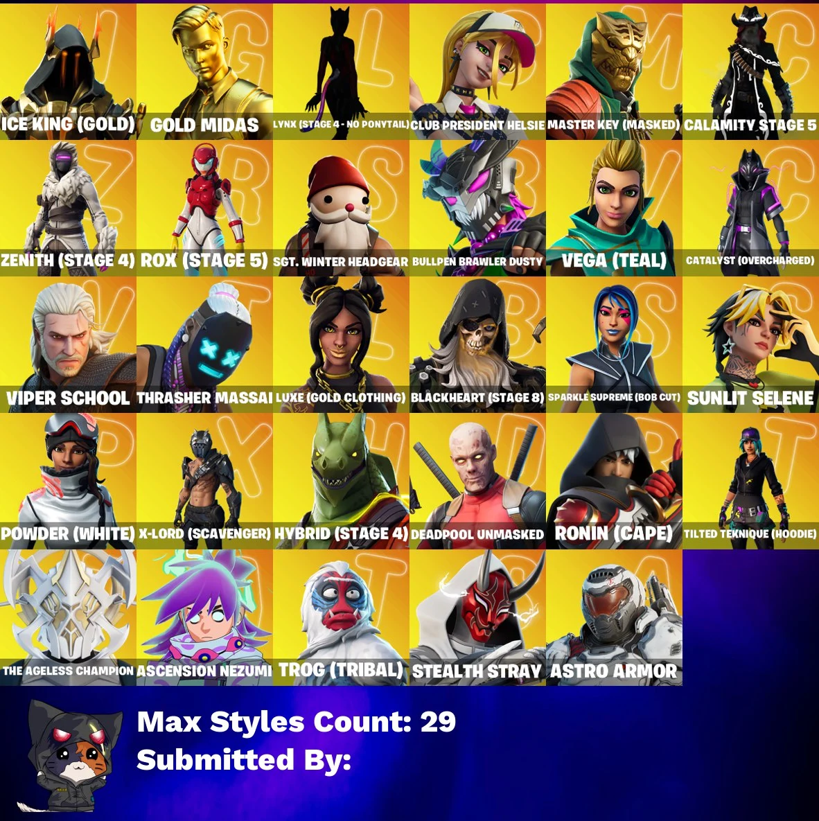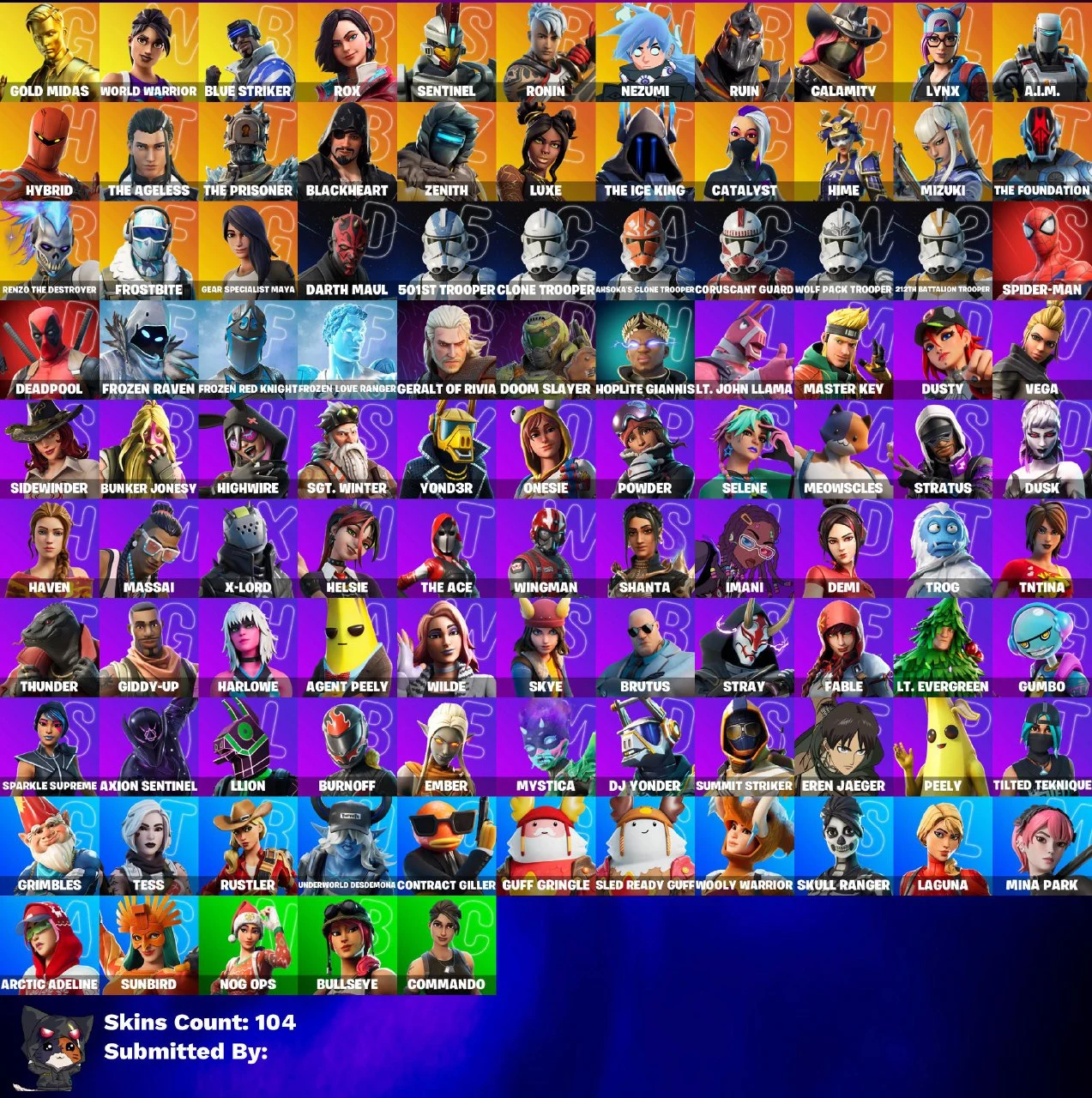 ๐ฅ๐ LIMITED OFFER ๐๐ฅ 104 SKINS ๐ GOLD MIDAS ๐ WORLD WARRIOR ๐ BLUE STRIKER ๐ ROX ๐ SENTINEL ๐ RONIN ๐ NEZUMI ๐ RUIN ๐ CALAMITY ๐ LYNX ๐ A.I.M. ๐ HYBRID ๐ THE AGELESS ๐ THE PRISONER ๐ BLACKHEART ๐ ZENITH ๐ LUXE ๐ THE ICE KING ๐ 300 VB ๐ FULL ACCESS ๐