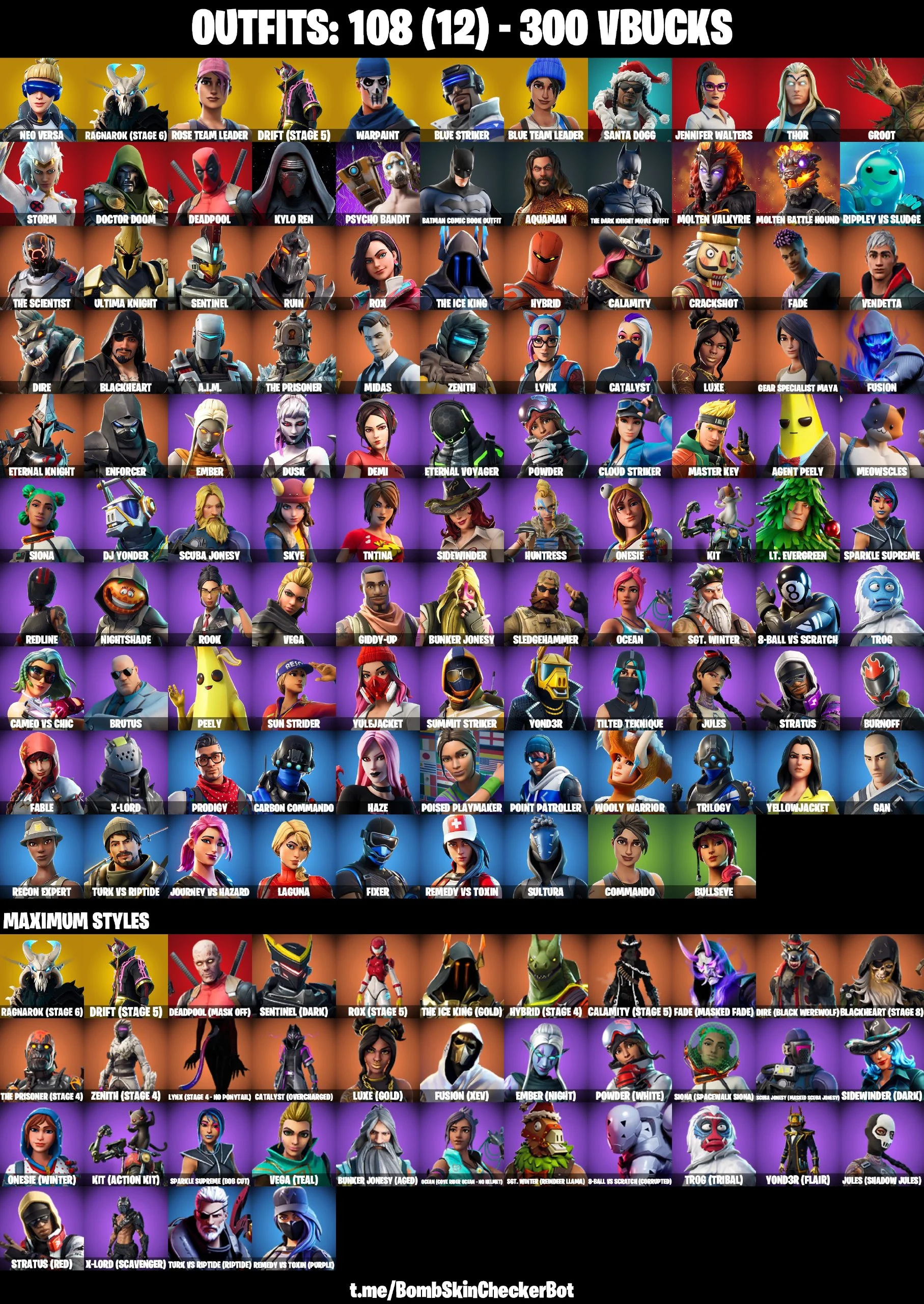 OG STW 108 Skins| Psycho Bandit, Neo Versa, The Dark Knight, Strom, Thor, Doom, Kylo Ren, Blue Striker|Full Access