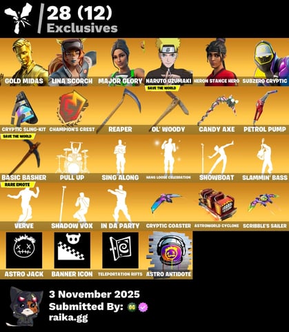 [PC] 32 skins | Kymera |All Might | Dusty | Inferno | Zero | Polar Peely | Doom Slayer | Geralt of Rivia | Goku Black | Helsie
