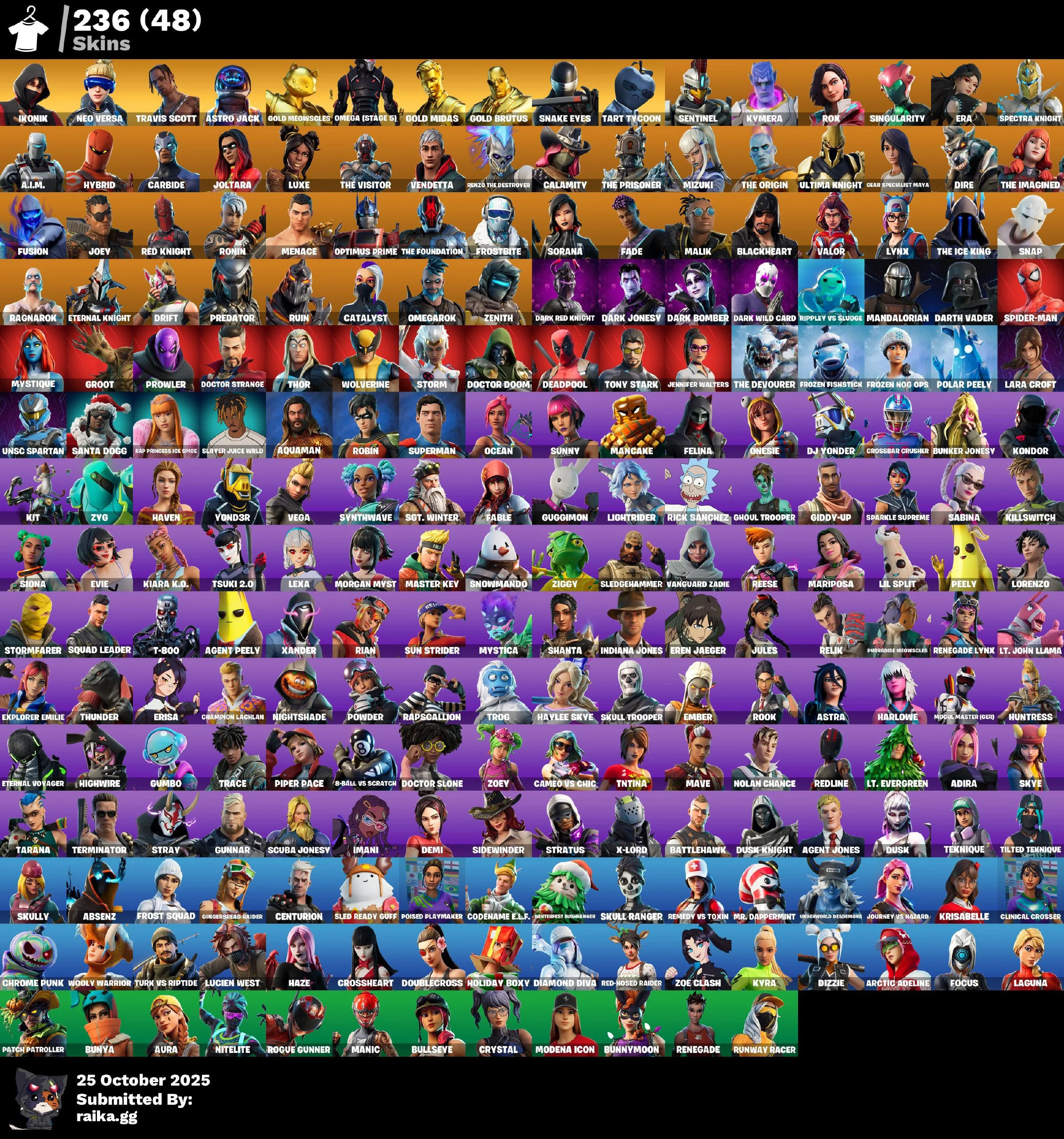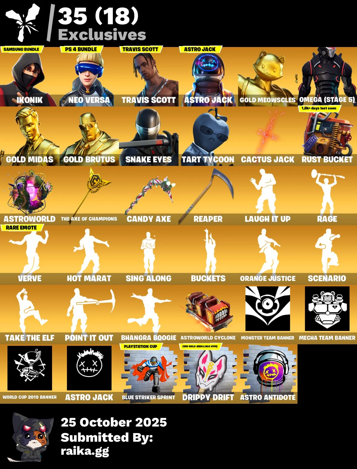 [PC | PSN | XBOX] 236 skins | IKONIK | Travis Scott | Neo Versa | Take The Elf | Astro Jack | Gold Meowscles | Omega (stage 5) | Candy Axe | Gold Midas | Gold Brutus | Snake Eyes