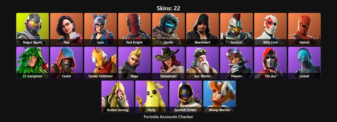 PC/PSN 22 Skins⚡ | Peely | Rogue Agent | Rox | Lynx | Red Knight | Zenith | Blackheart | Sentinel | Wild Card | Hybrid | Lt. Evergreen | Castor