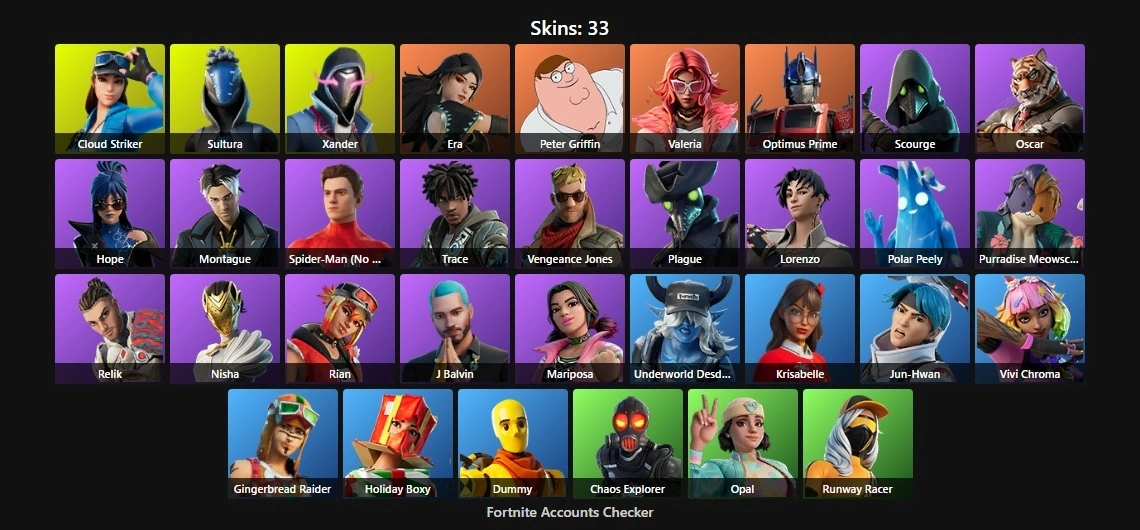 PC/PSN 33 Skins⚡ | Cloud Striker | Sultura | Xander | Era | Peter Griffin | Valeria | Optimus Prime | Scourge | Oscar | Hope | Montague