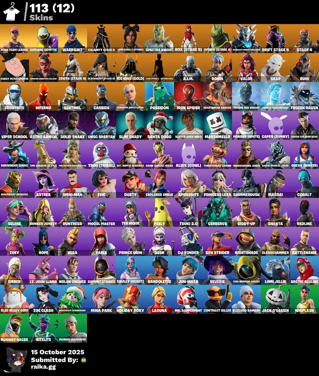[PC/PSN/XBOX] 113 skins | OG STW | Peely | Star Wand | Laugh It Up | Get Griddy | Ice Breaker | Subzero Cryptic lai367