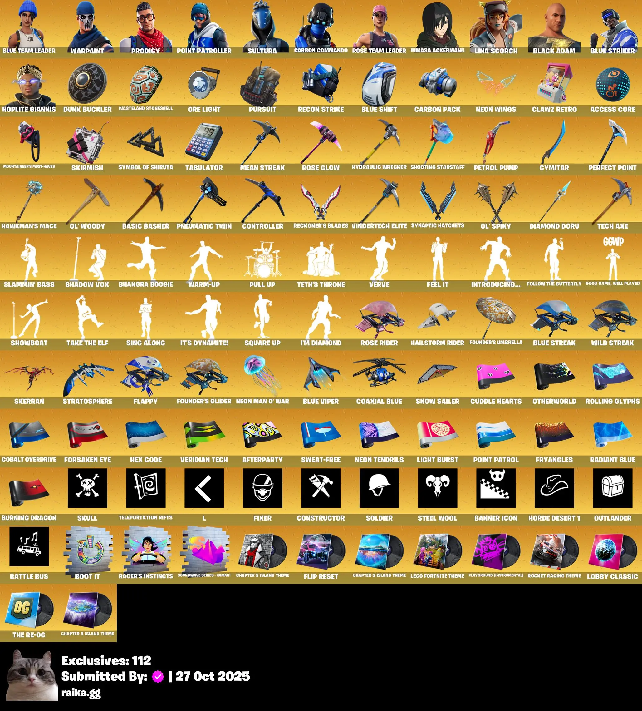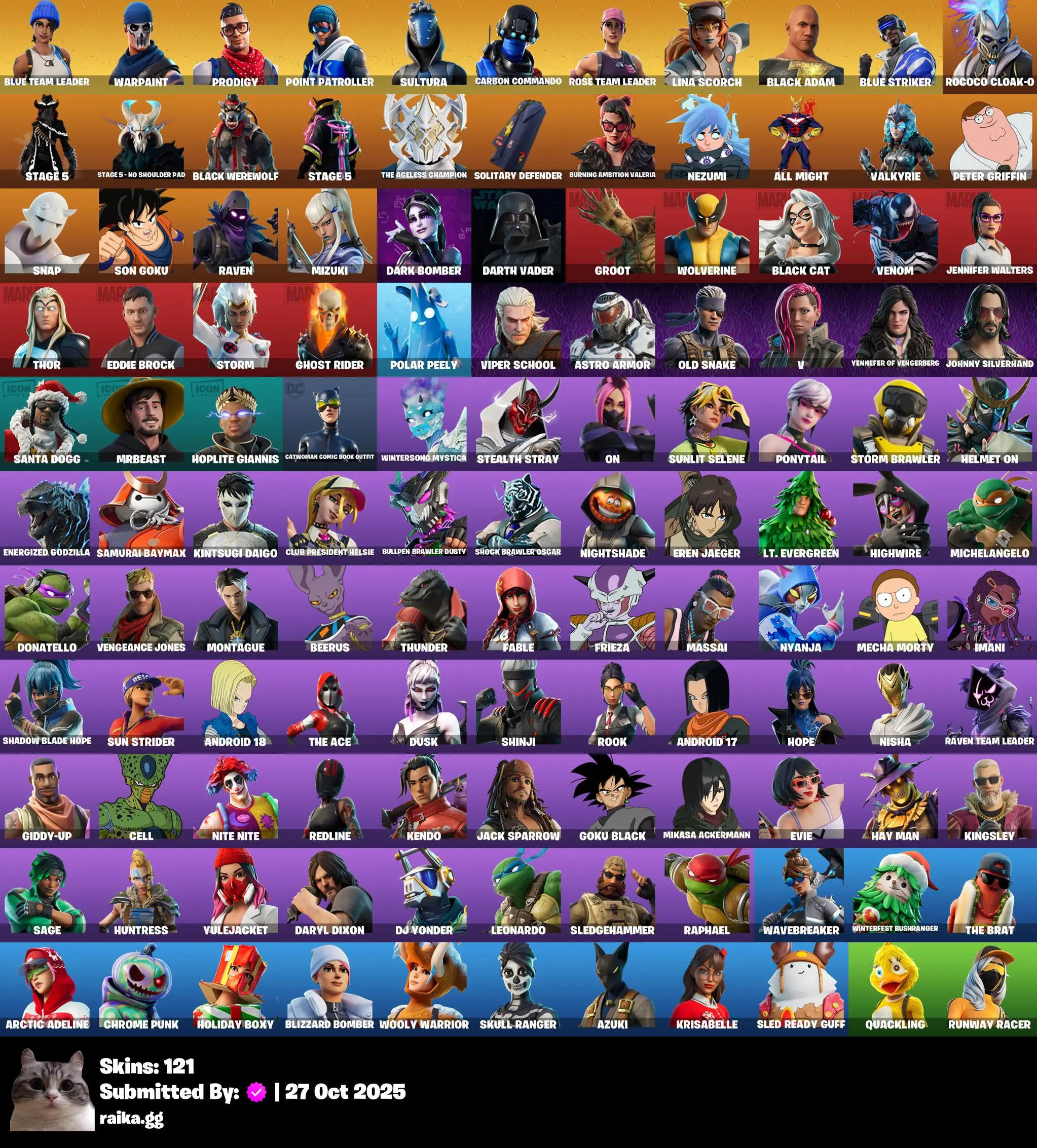 [PC/PSN/XBOX] 121 skins | OG STW | Blue Team Leader | Prodigy | Point Patroller | Sultura | Carbon Commando | Lina Scorch | Black Adam | Blue Striker
