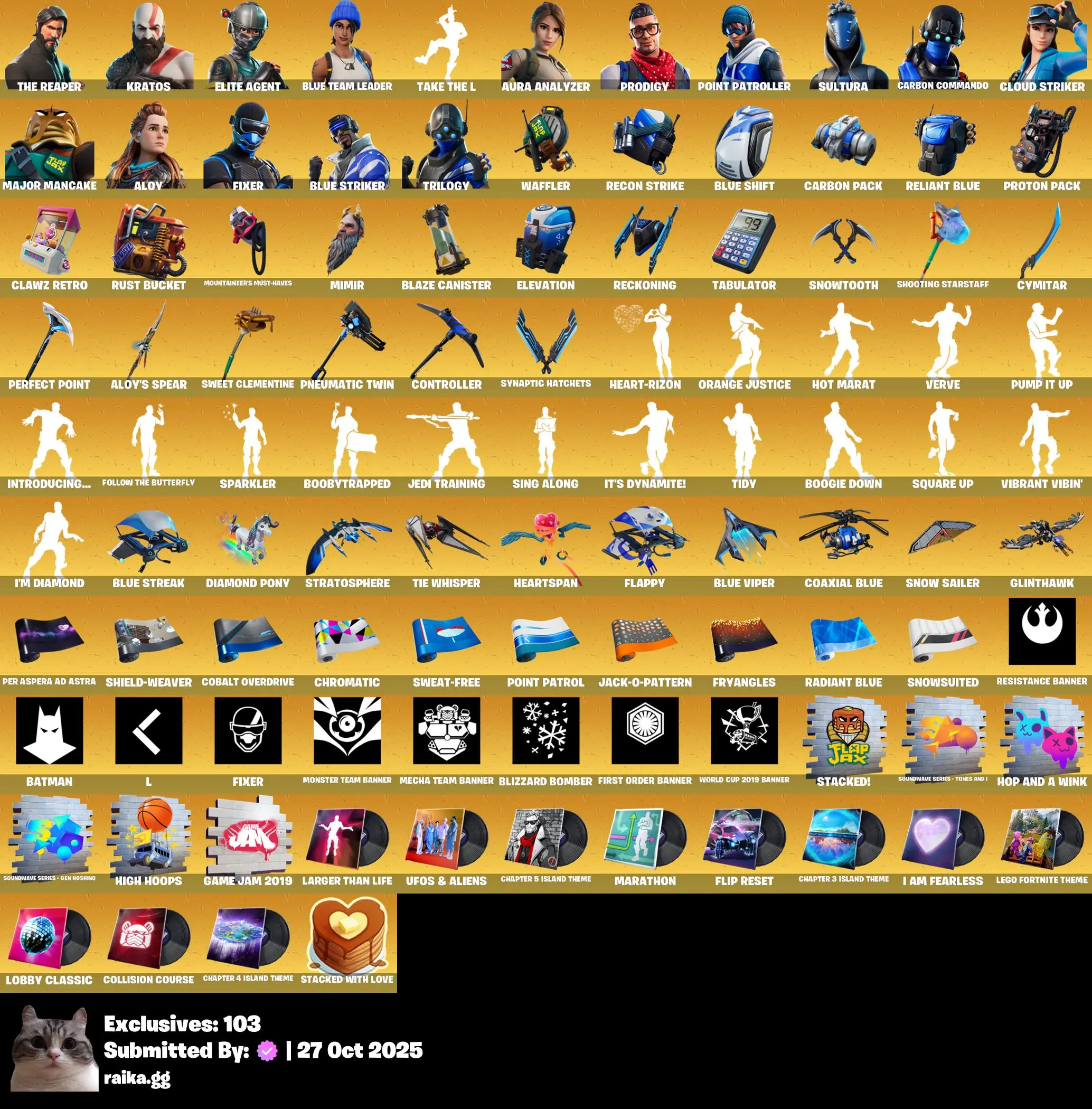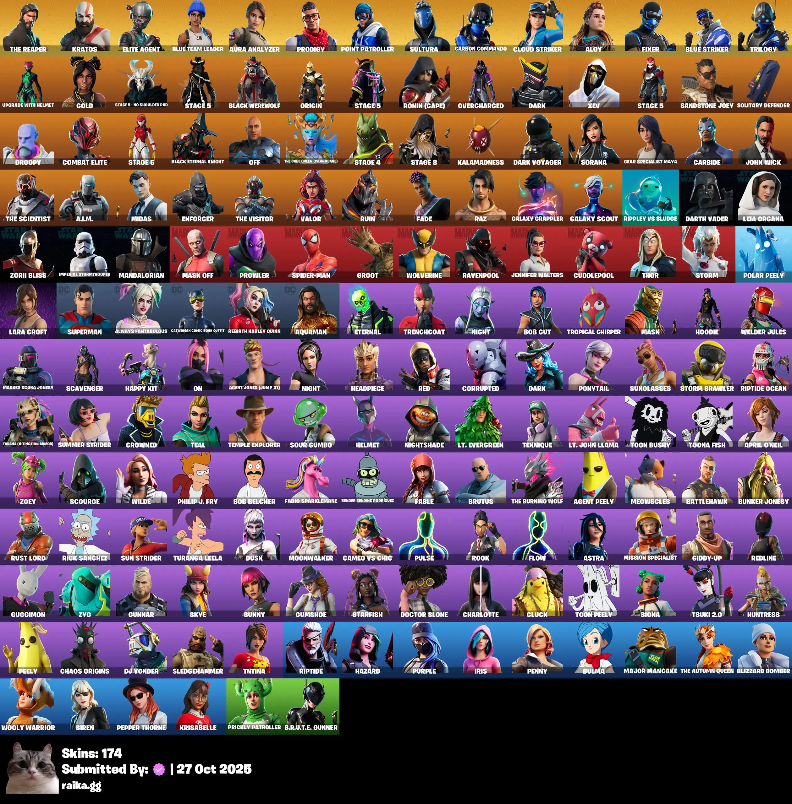 [PC/PSN/XBOX] 174 skins | The Reaper | Kratos | Elite Agent | Blue Team Leader | Aura Analyzer | Prodigy | Point Patroller | Sultura | Carbon Commando