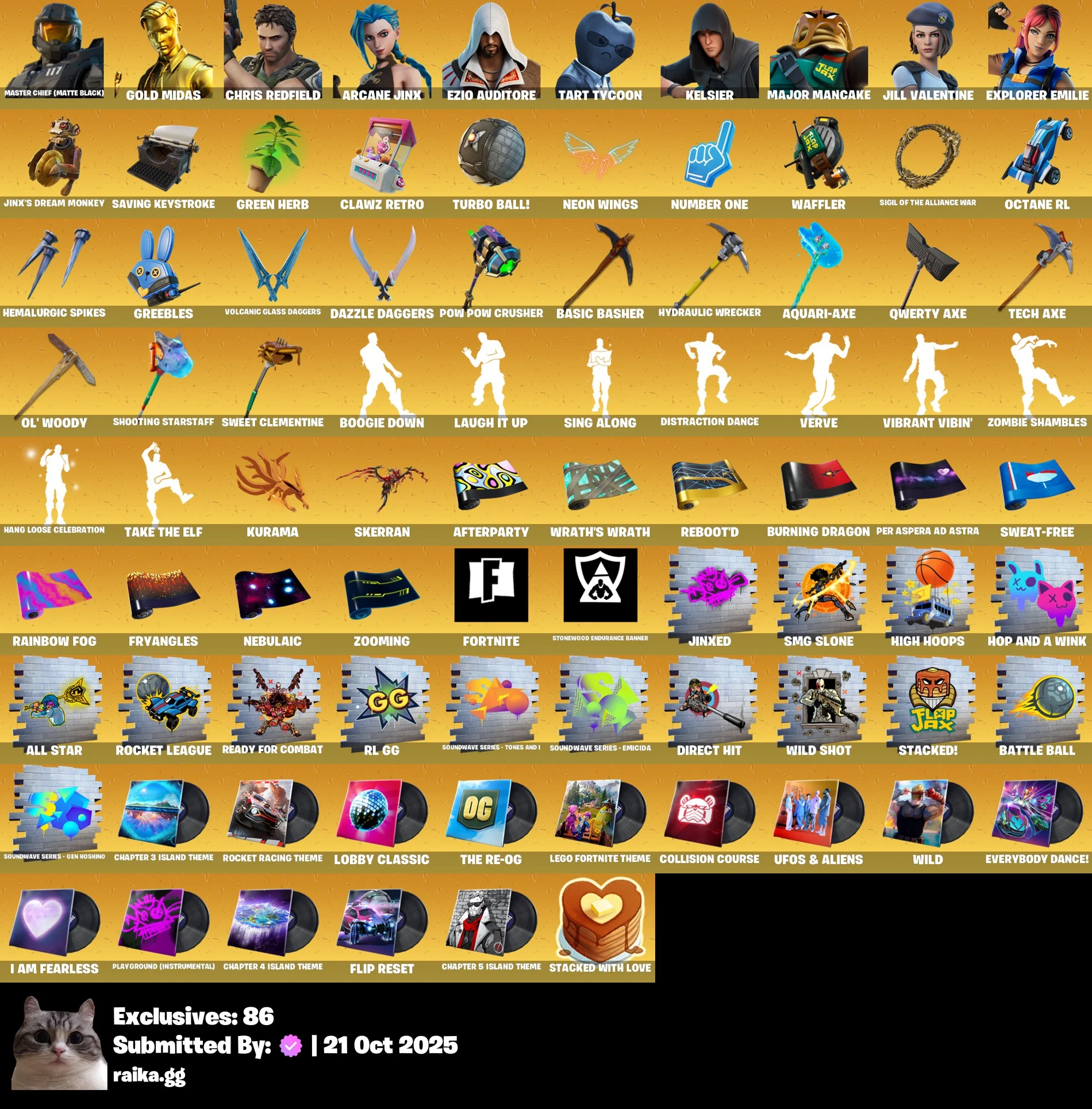 [PC/PSN/XBOX] 210 skins | Master Chief (Matte Black) | Gold Midas | Arcane Jinx | Tart Tycoon | Jill Valentine | Explorer Emilie | Burning Ambition Va