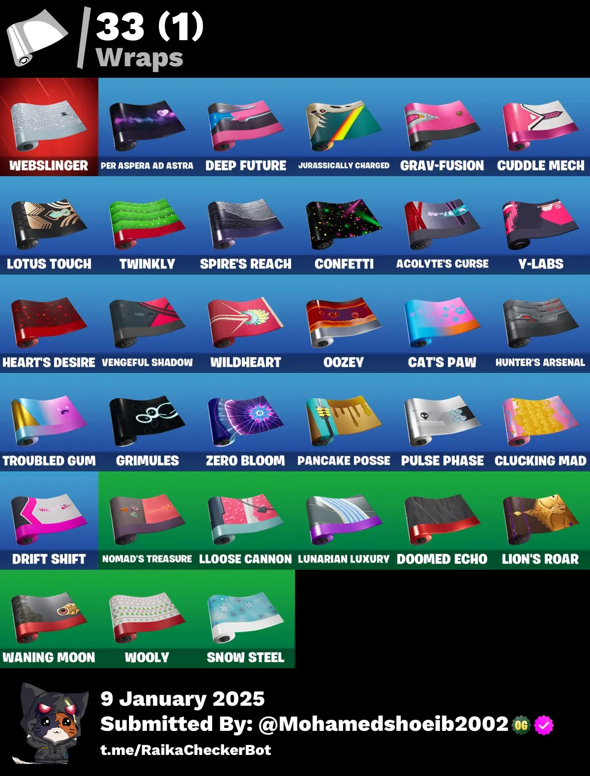[PC/PSN/XBOX] 38 skins | Ronin | Predator | Raz | Mecha Cuddle Master | Vi | Galaxia | Alli | Menace | Kymera | Cyclo | Mandalorian | Spider-Man | 490 VB