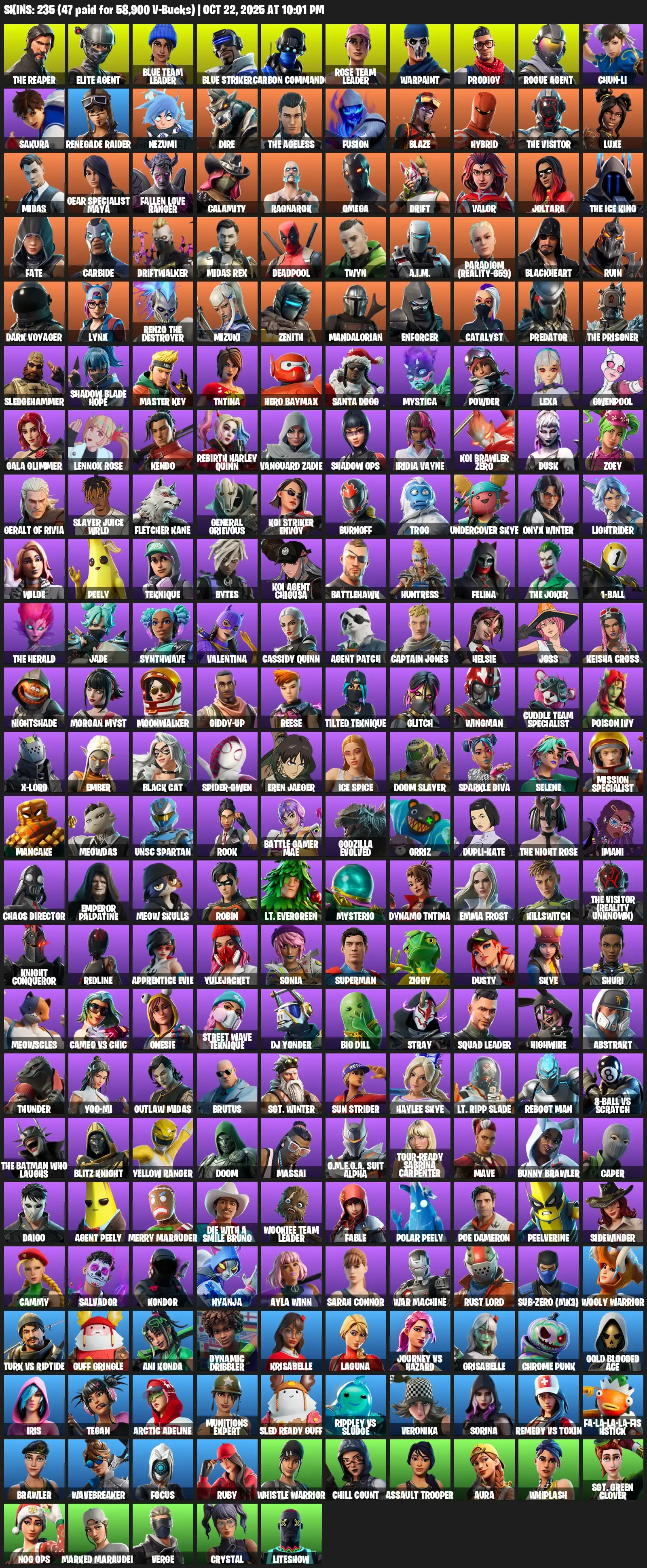 [PC/PSN/XBOX] | 235 skins | Take The L | OG STW | Renegade Raider | The Reaper | Elite Agent | Omega | Blue Team Leader | #GSR0328 | #MBFN