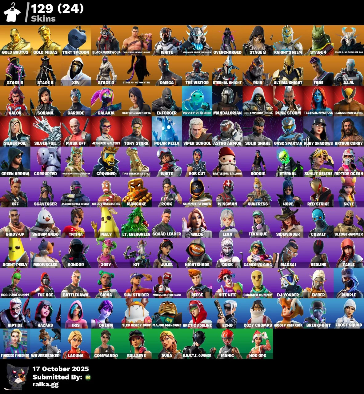 [PC/XBOX] 129 skins | Merry Mint Axe | Jules | Aura | Go Mufasa | Tony Stark | Peely | Omega | Galaxia lai482
