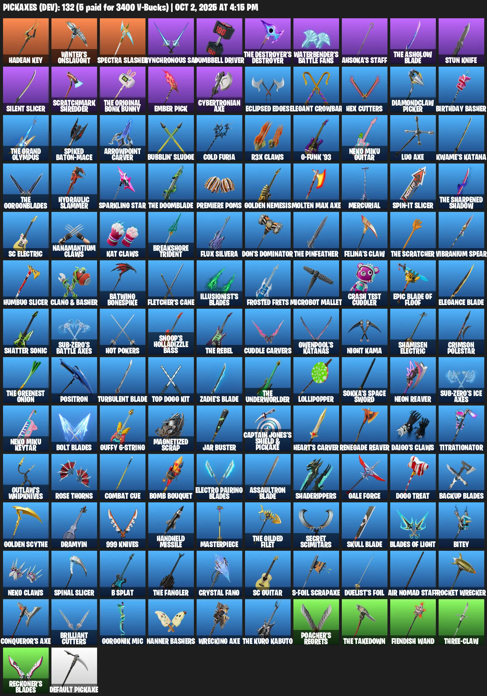 [PC/XBOX/PSN] 107 Skins | Kado Thorne | Hades | Spectra Knight | Peter Griffin | Carbide | Zeus | Valeria | Omegarok | Aerial Assault Bomber | Medusa | Sabrina Carpenter | T-60 Power Armor | Vengeance Jones | Joss | Ringmaster Scarr | Neko Hatsune Miku