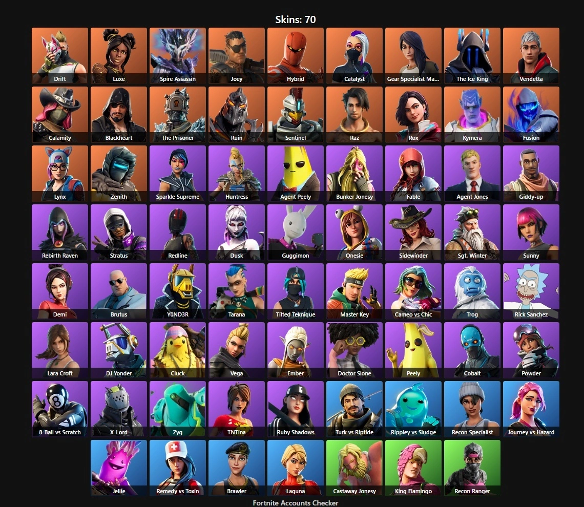PC/XBOX/PSN 70 Skins⚡ | Lara Croft | Peely | Drift | Luxe | Spire Assassin | Joey | Hybrid | Catalyst | Gear Specialist Maya | The Ice King | Vendetta