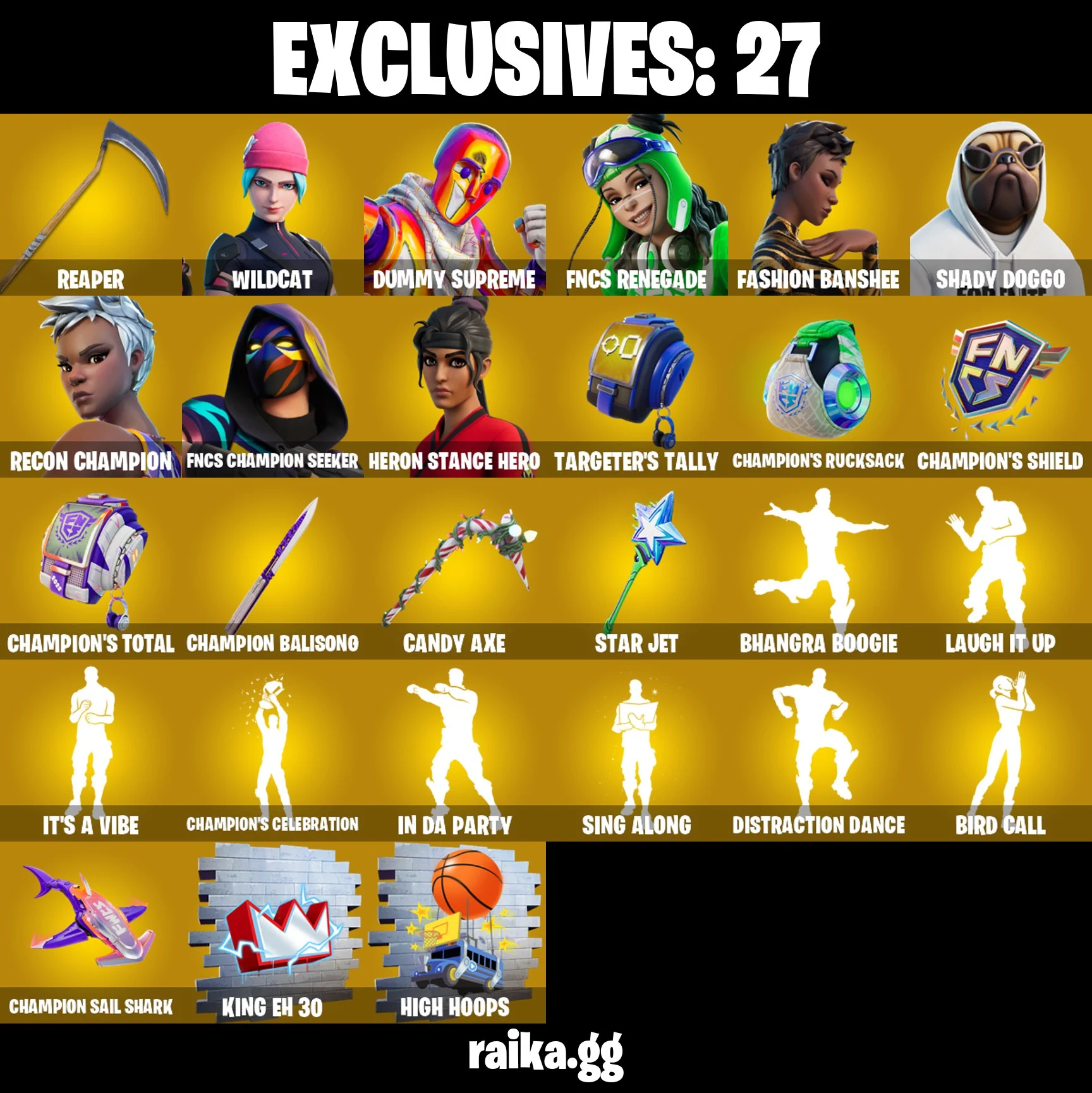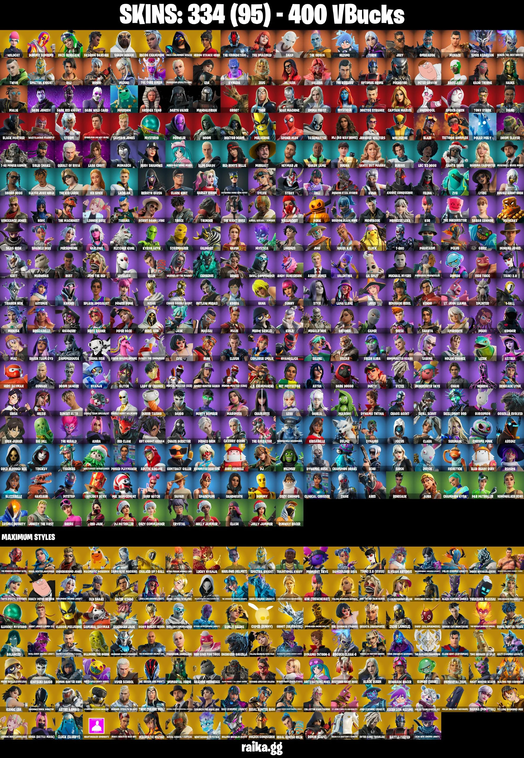 🎁✨ULTRA STACKED✨🎁 334 SKINS 🌙 WILDCAT 🌙 TONY STARK 🌙 REAPER 🌙 DUMMY SUPREME 🌙 FNCS RENEGADE 🌙 FASHION BANSHEE 🌙 SHADY DOGGO 🌙 RECON CHAMPION 🌙 FNCS CHAMPION SEEKER 🌙 HERON STANCE HERO 🌙 THE FOUNDATION 🌙 SNAP 🌙 400 VBUCKS ⚡️PC/PSN/XBOX⚡️