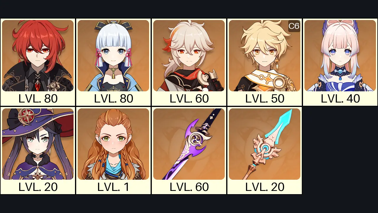 💙[Europe] AR 53 💙 9x Five Stars 💙 32 Chars 💙 Diluc & Ayaka & Kazuha & Kokomi & Mona 💙