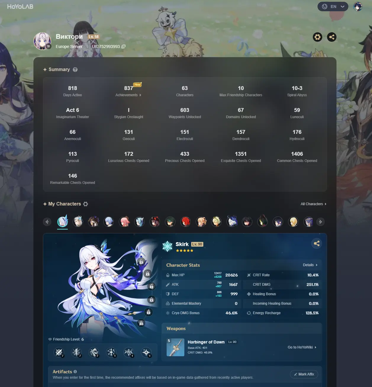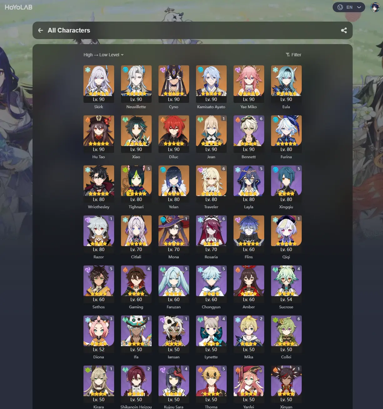 #GE694 [EU] AR 58 | 30 LEGS| 16 EVENT LEGS HSR | Flins+Skirk+Citlali+Wriothesley+Furina+Tighnari C5+Hu Tao+Xiao+Neuvillette+Cyno | FULL ACCESS + EMAIL